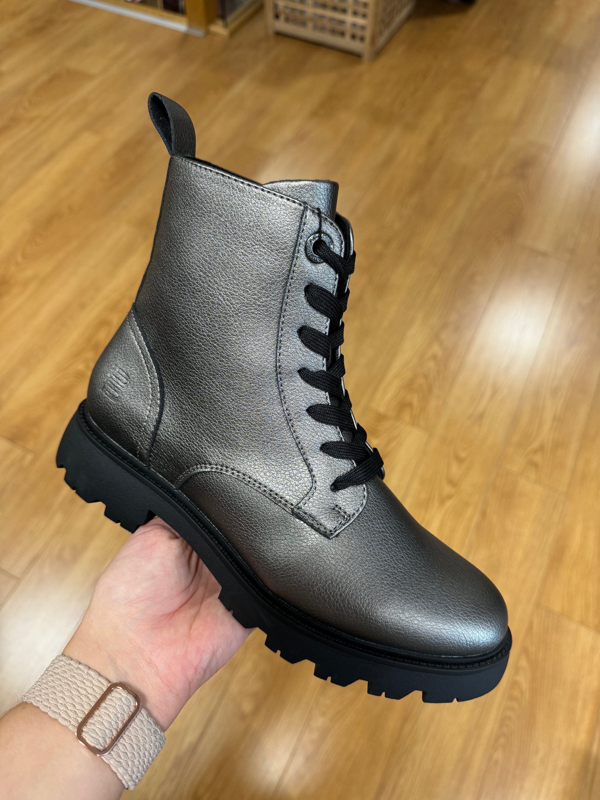 Bagatt Lace Up Biker Style Boot in Metallic Finish with Subtle Shimmer Edging to the Sole