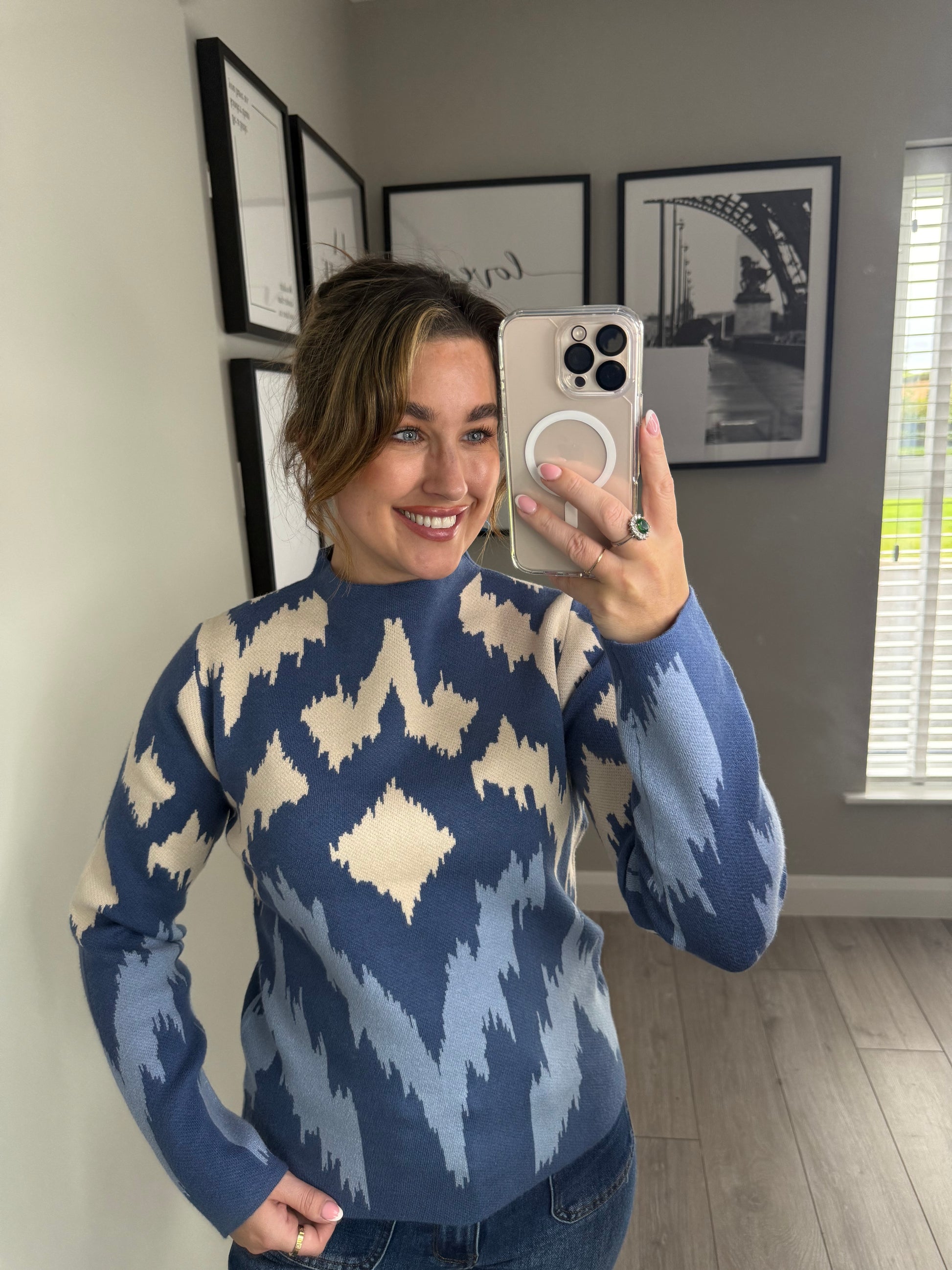 Blue/Beige Print Jumper
