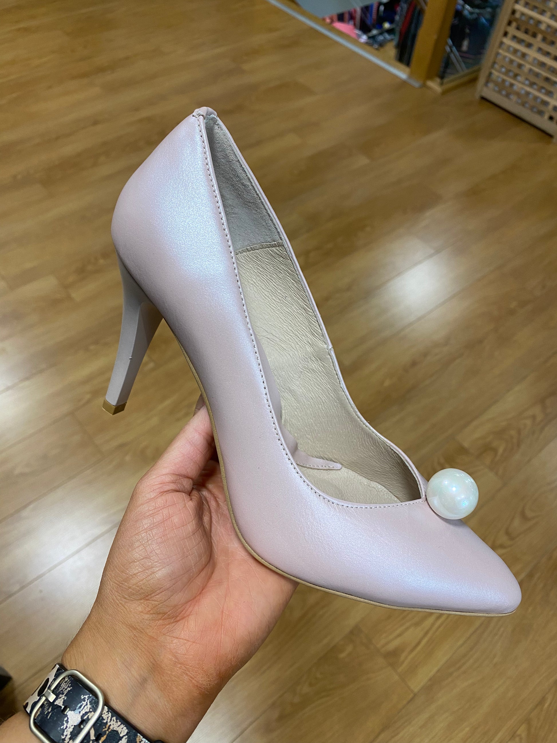 Emis Soft Leather Court Shoe with Soft Pearlised Finish, Pearl Attachment & 3.5 inch Heel