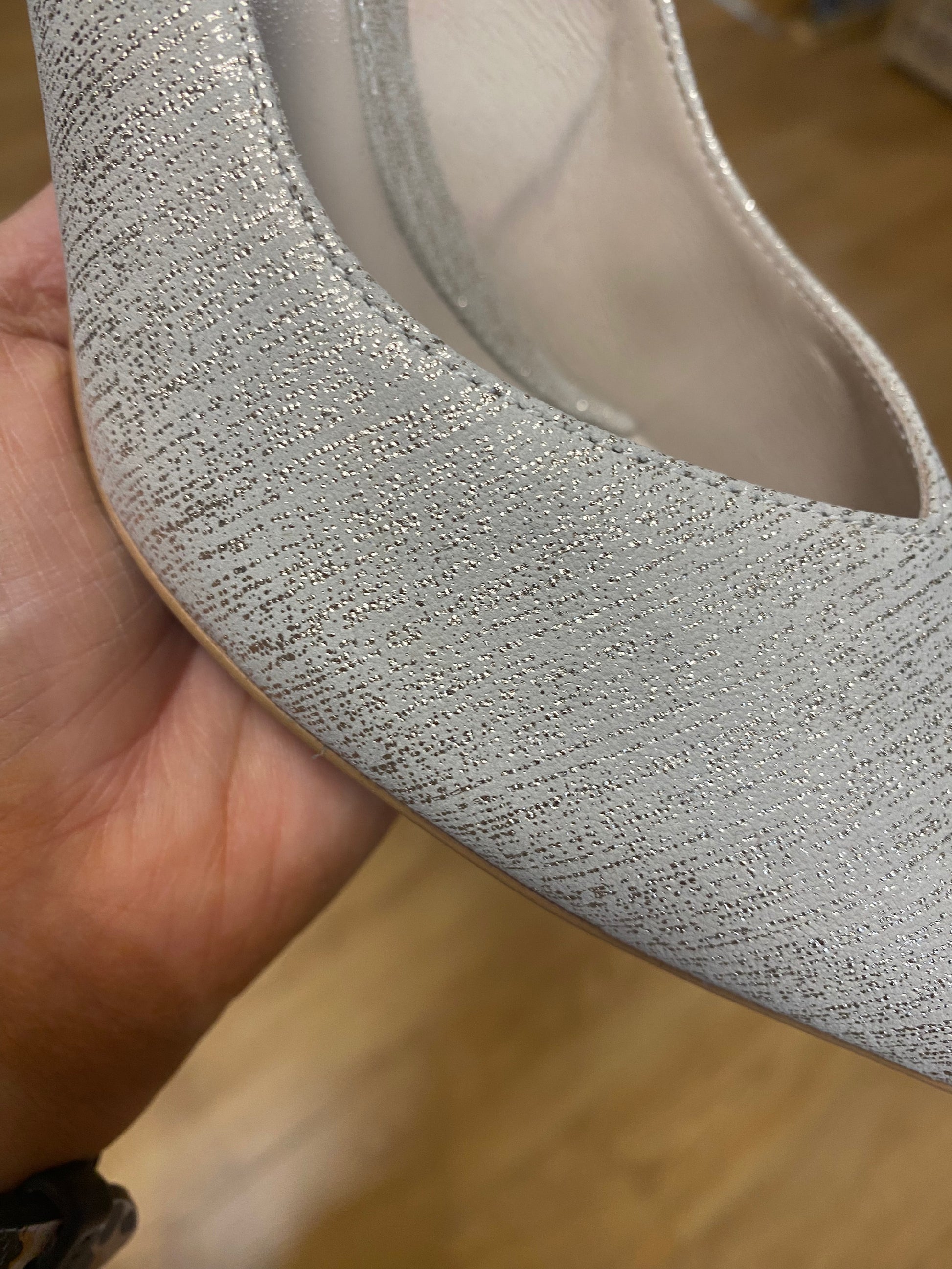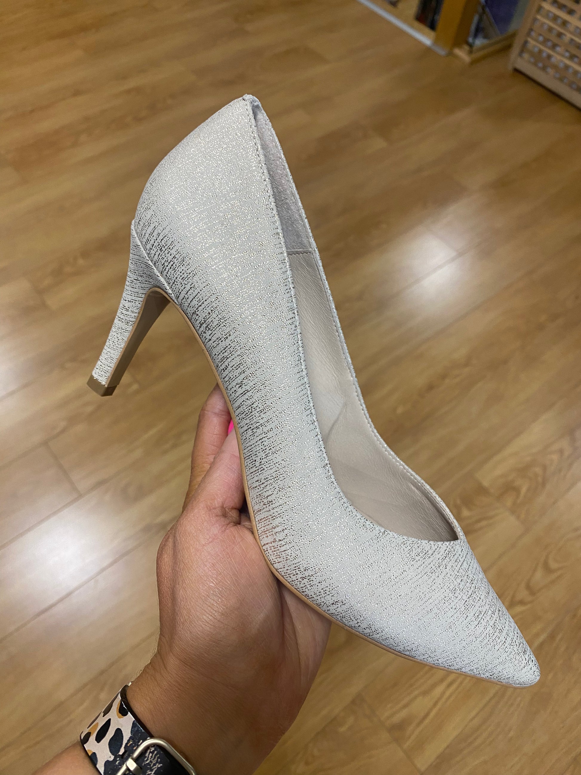 Emis Soft Leather Court Shoe with Pointed Toe, 3 inch Heel & Shimmer Finish