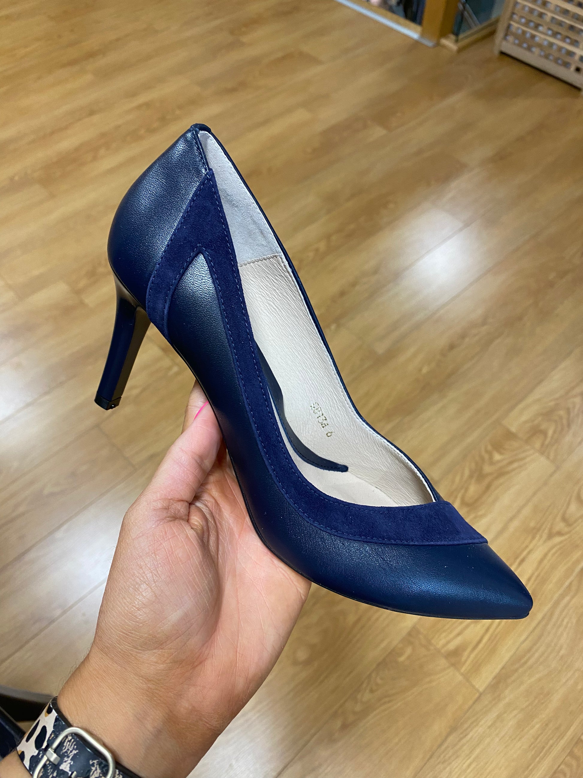 Emis Soft Leather Court Shoe with Suede Scalloped Edging & 3 inch Heel