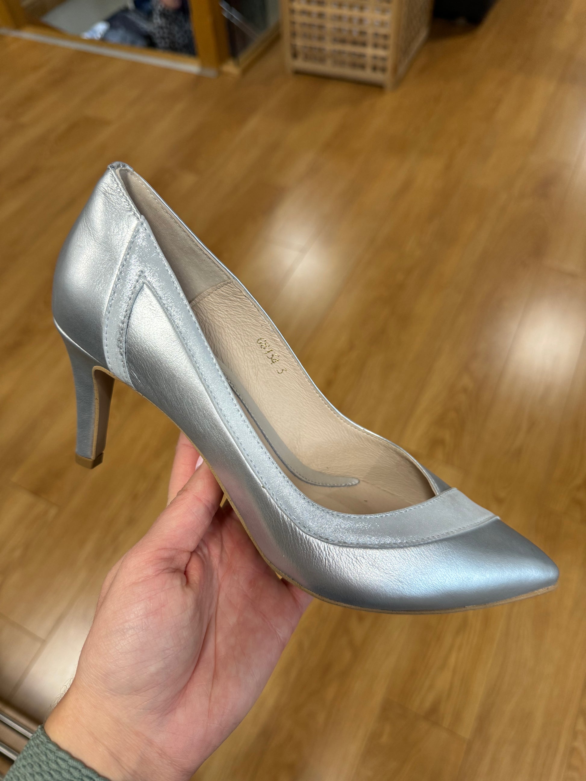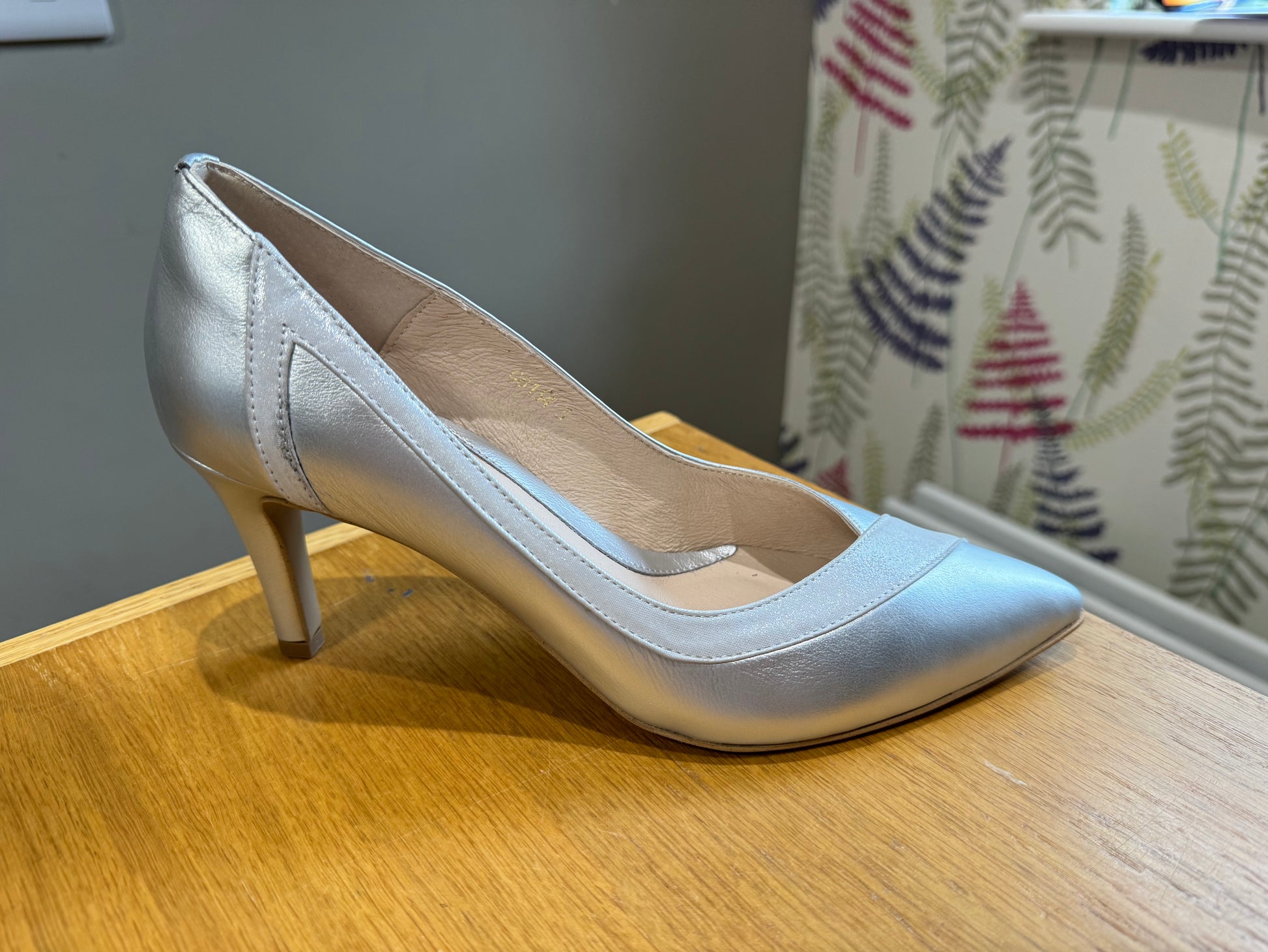Emis Soft Leather Court Shoe with Metallic Scalloped Edging & 3 inch Heel