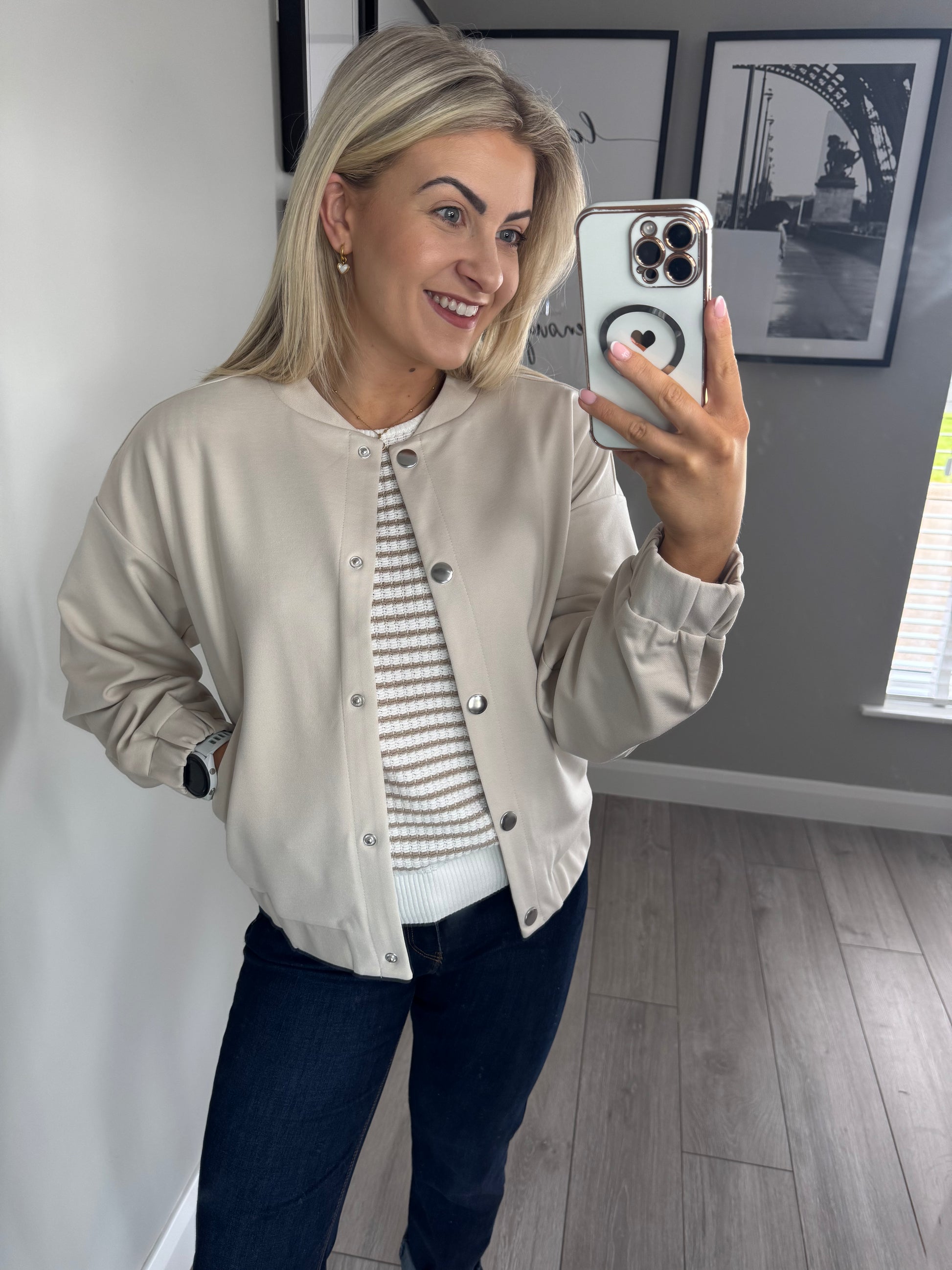 -Freequent lightweight beige bomber style jacket with cuffed sleeves & hem.
