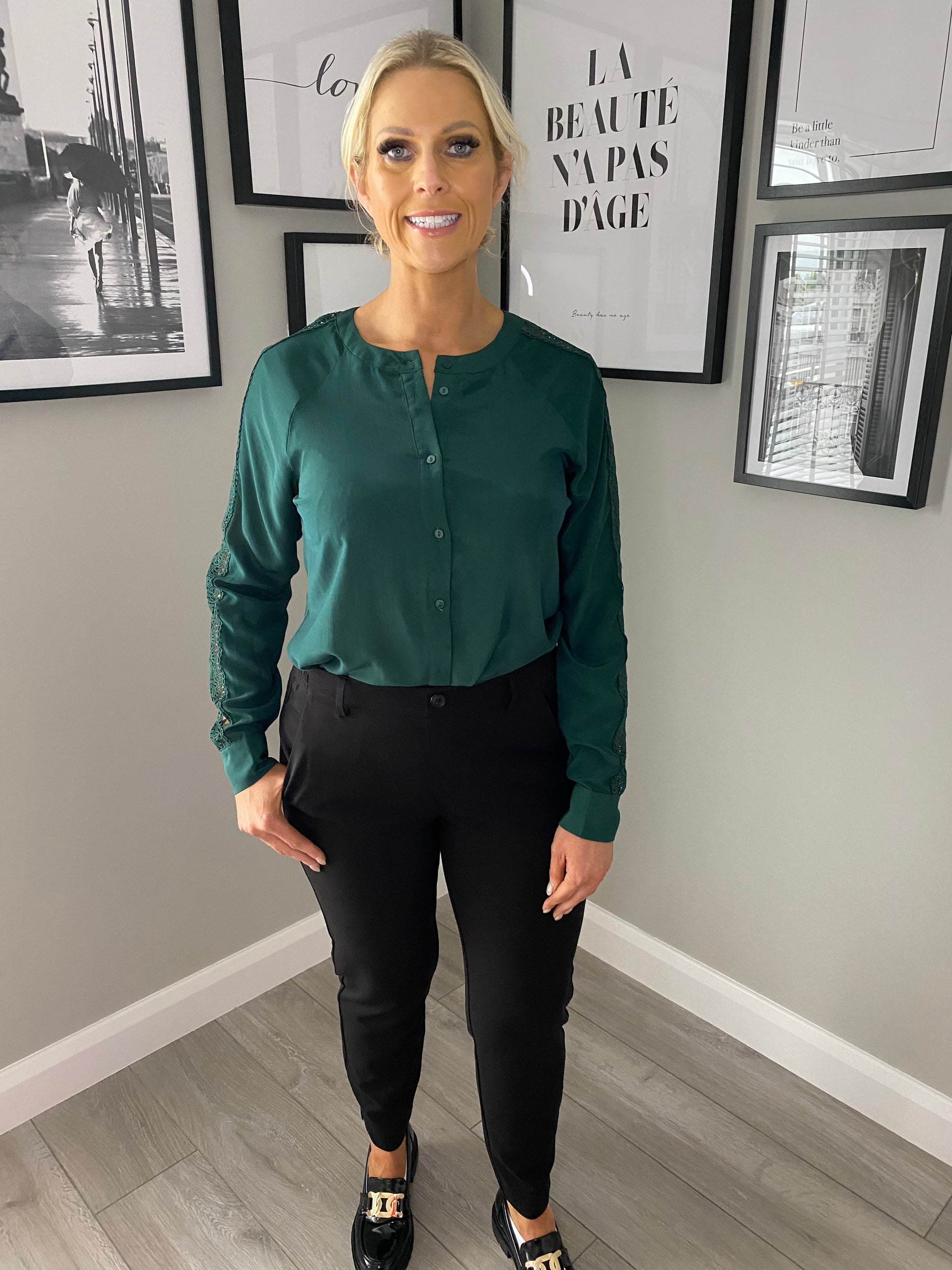 We've styled them with our Freequent green lace blouse & XTI black chain loafers, we love this look!
