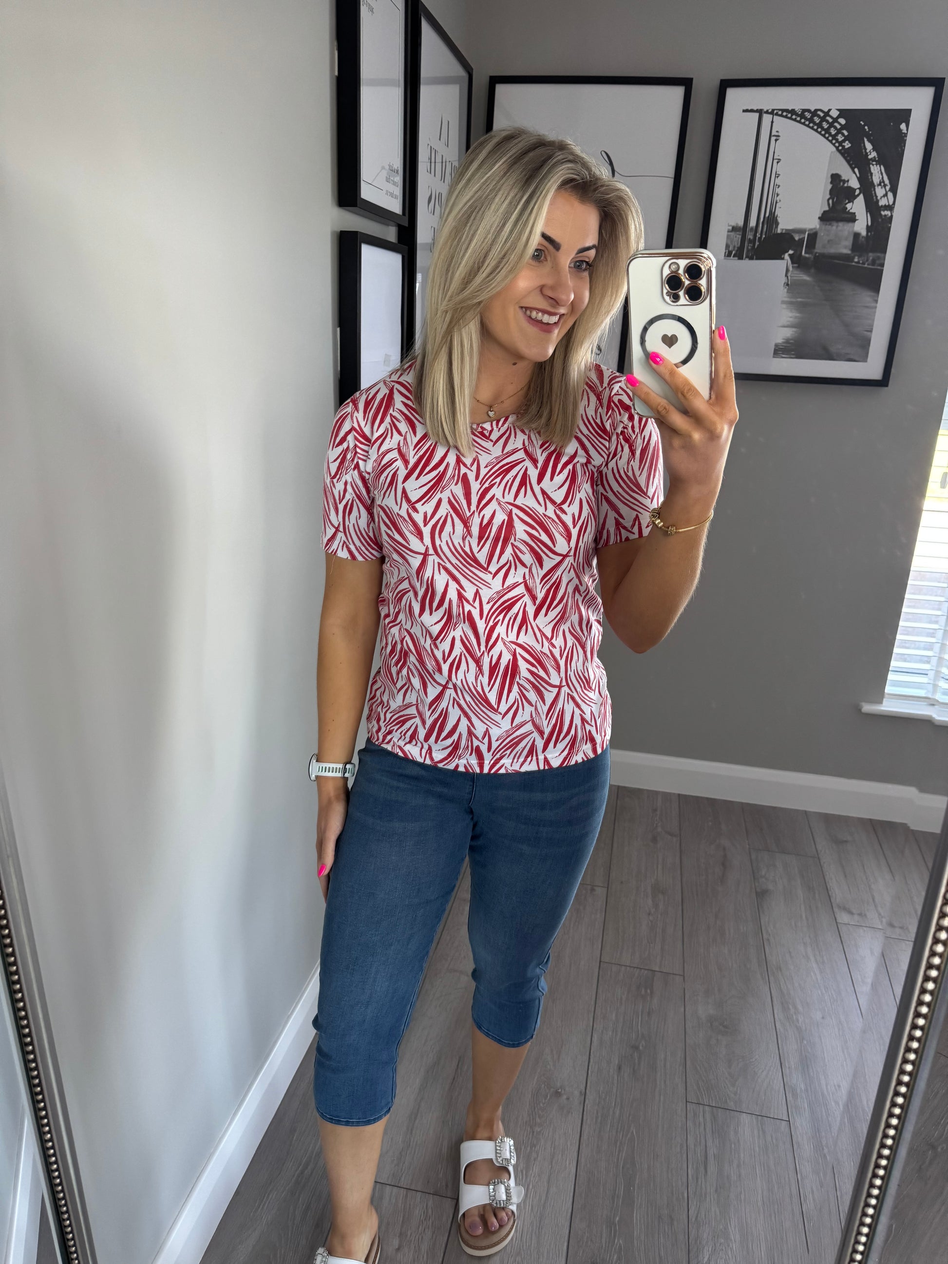 From the Freequent range we have our pull on crops in pedal pusher length (just below the knee). With large elasticated waist band these pull on without the bother of buttons or zips & are very comfortable on the waist. This is a mid denim wash with slight distressed look.118454