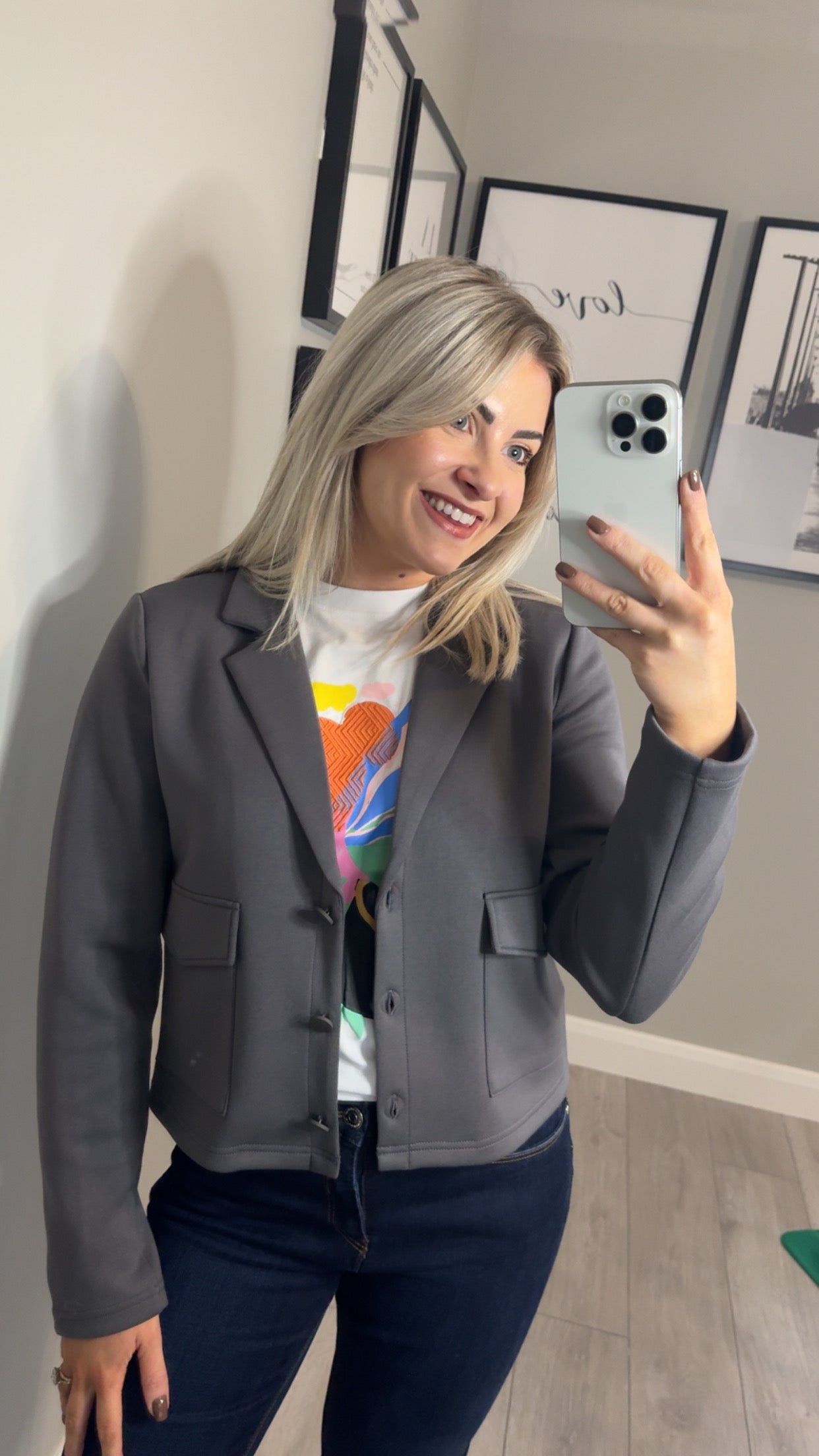 -Freequent lightweight blazer/jacket in slate grey with pocket detail & double button.