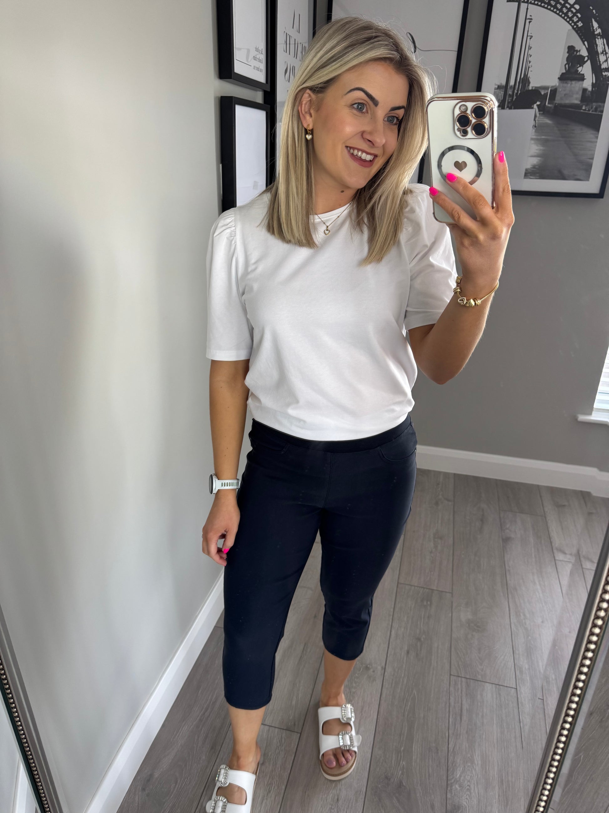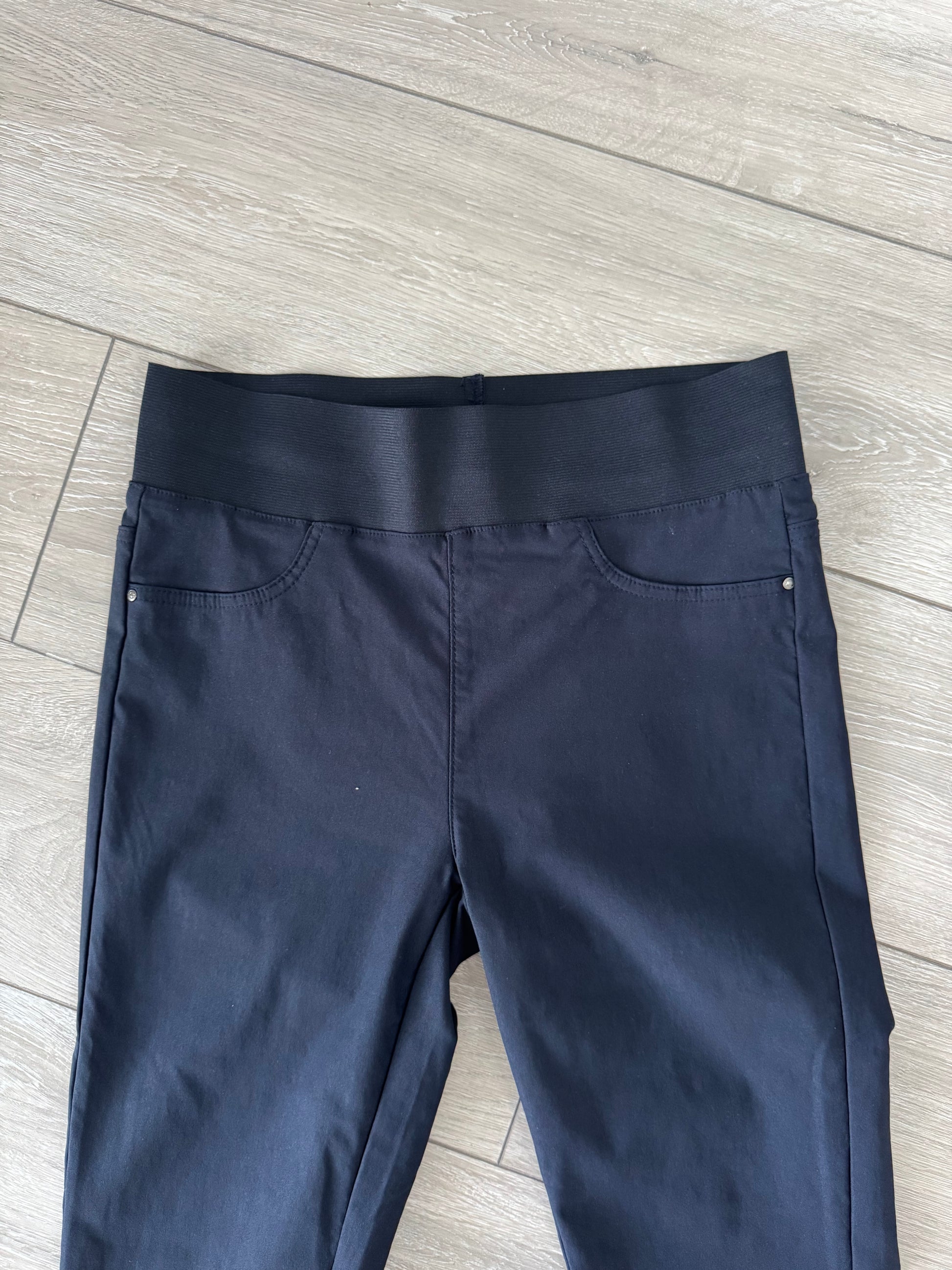 From the Freequent range we have our pull on crops in pedal pusher length (just below the knee). With large elasticated waist band these pull on without the bother of buttons or zips & are very comfortable on the waist. This is a deep navy colouring.118453