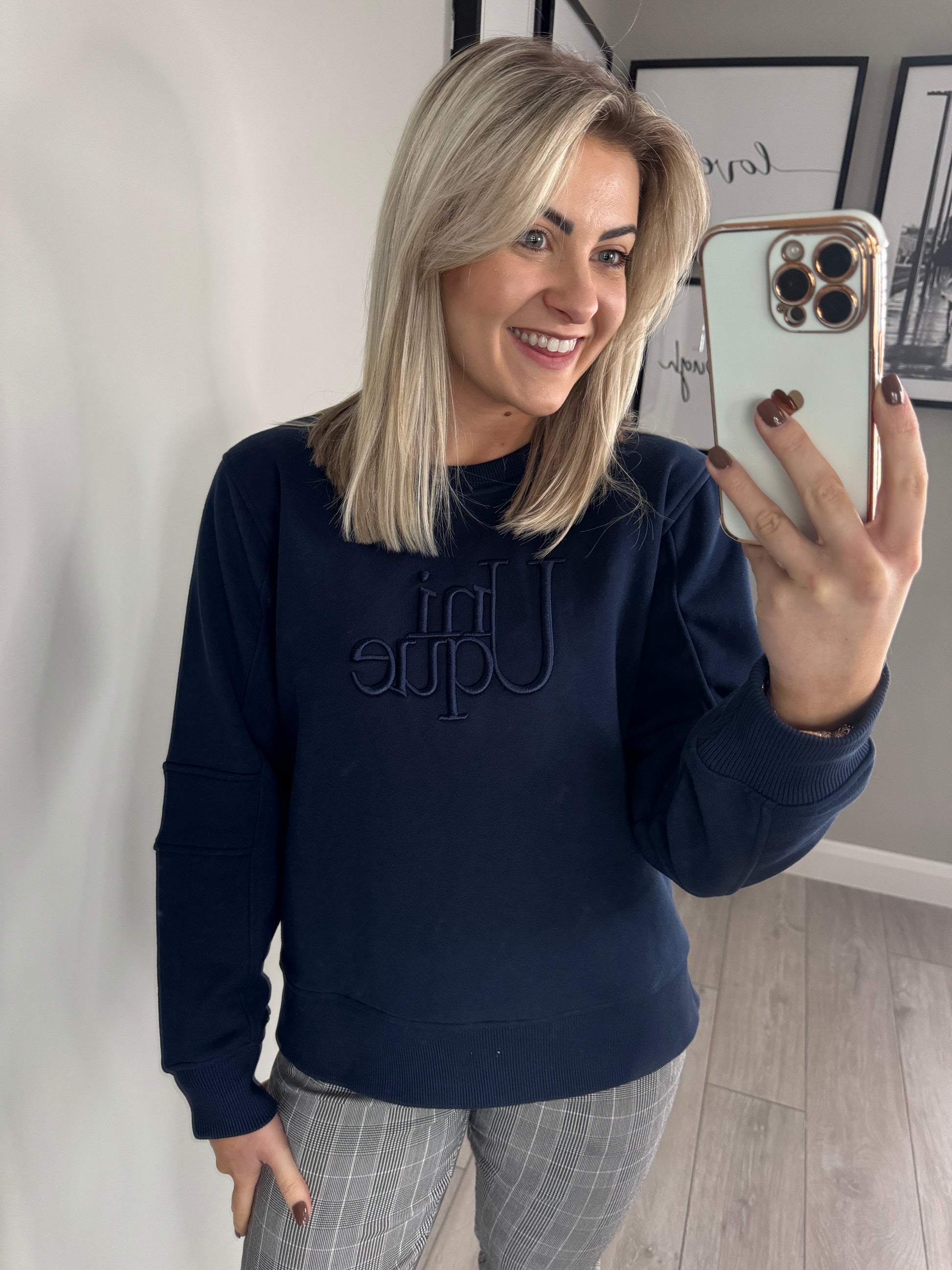 Freequent Navy Slogan Sweater