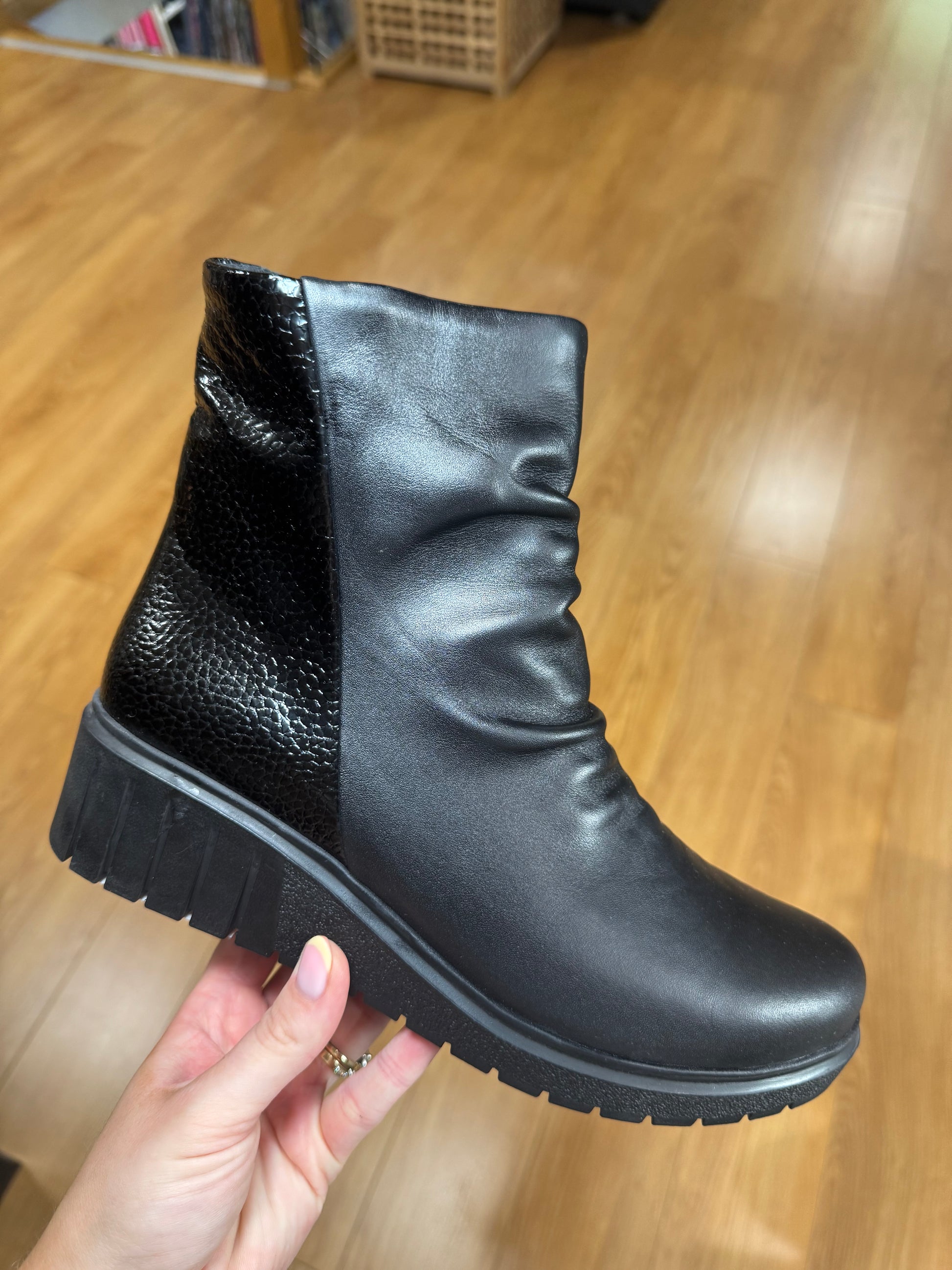 Lotus Soft Leather Small Wedge Boot with Ruched Effect & Patent Back