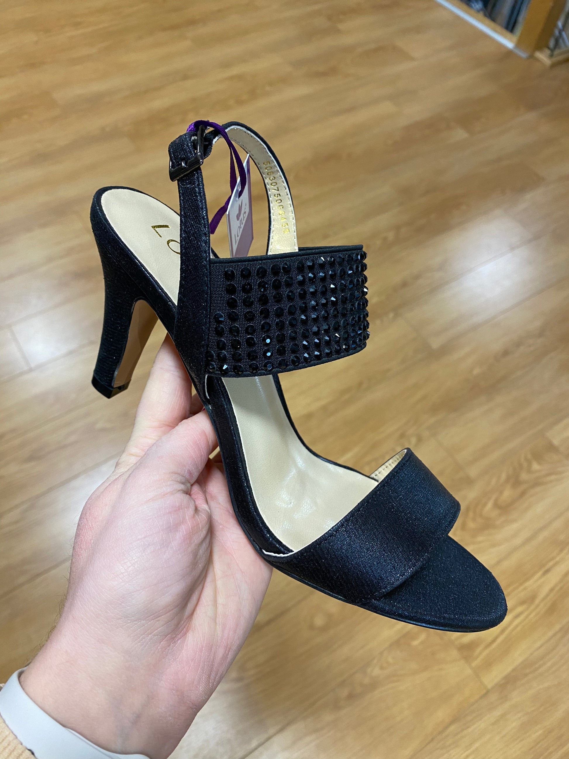 Lotus Double Strap Diamante/Shimmer Sandal with Mid Heel