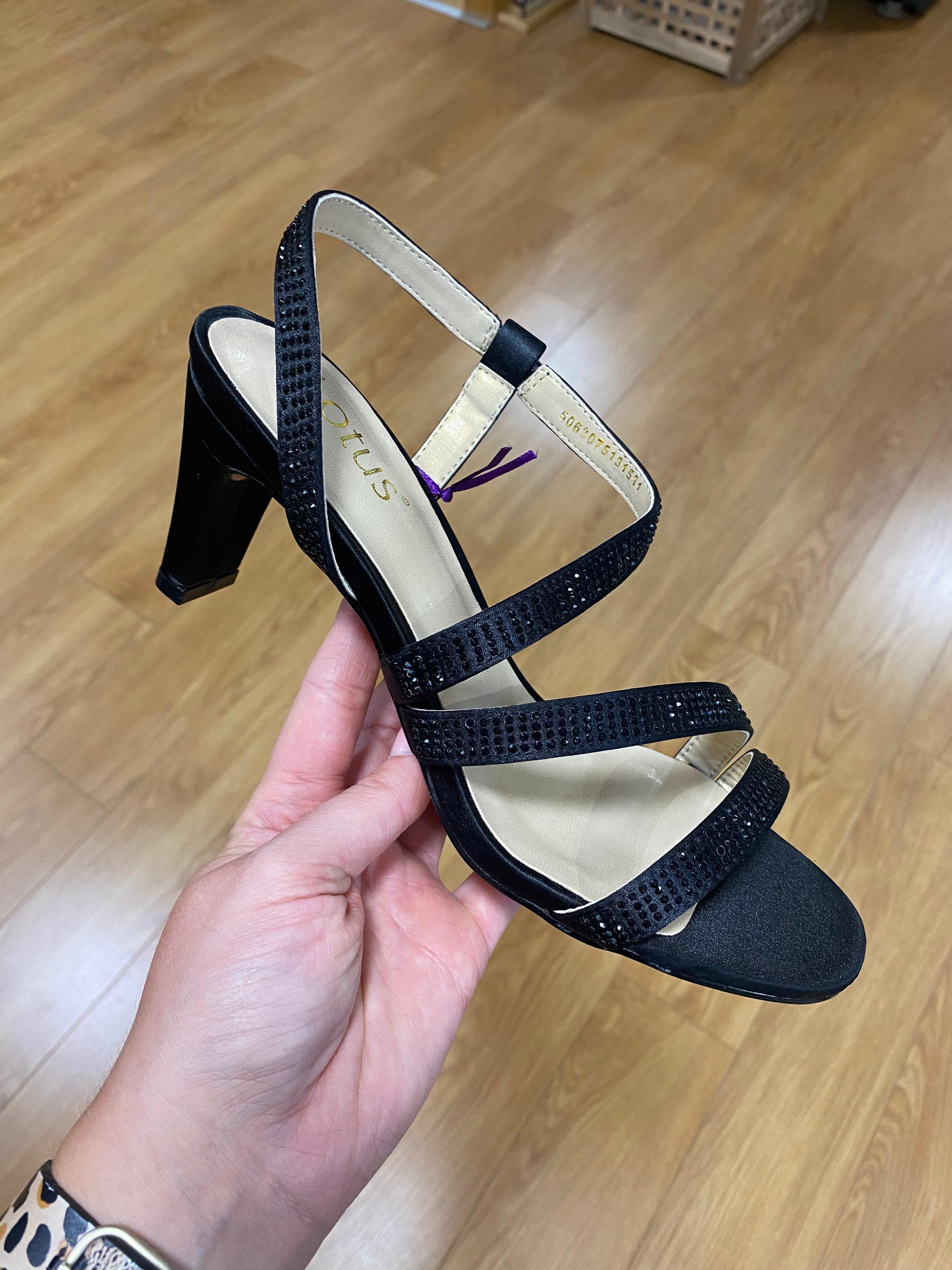 Lotus Rectangular Shaped Heeled Sandal with Sweeping Diamante Strap (Pull On)