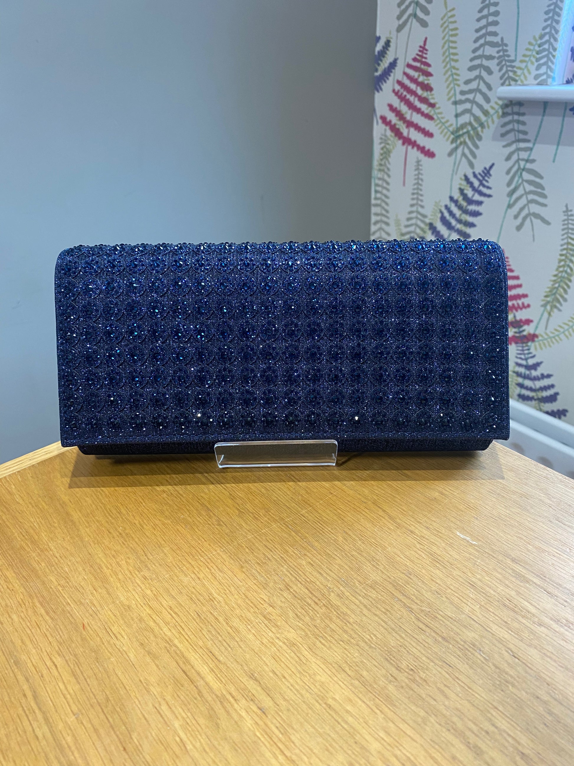 Lotus Navy Diva Clutch Bag with Chain Strap to Match Lotus Viva Navy Shimmer/Diamante Court Shoe