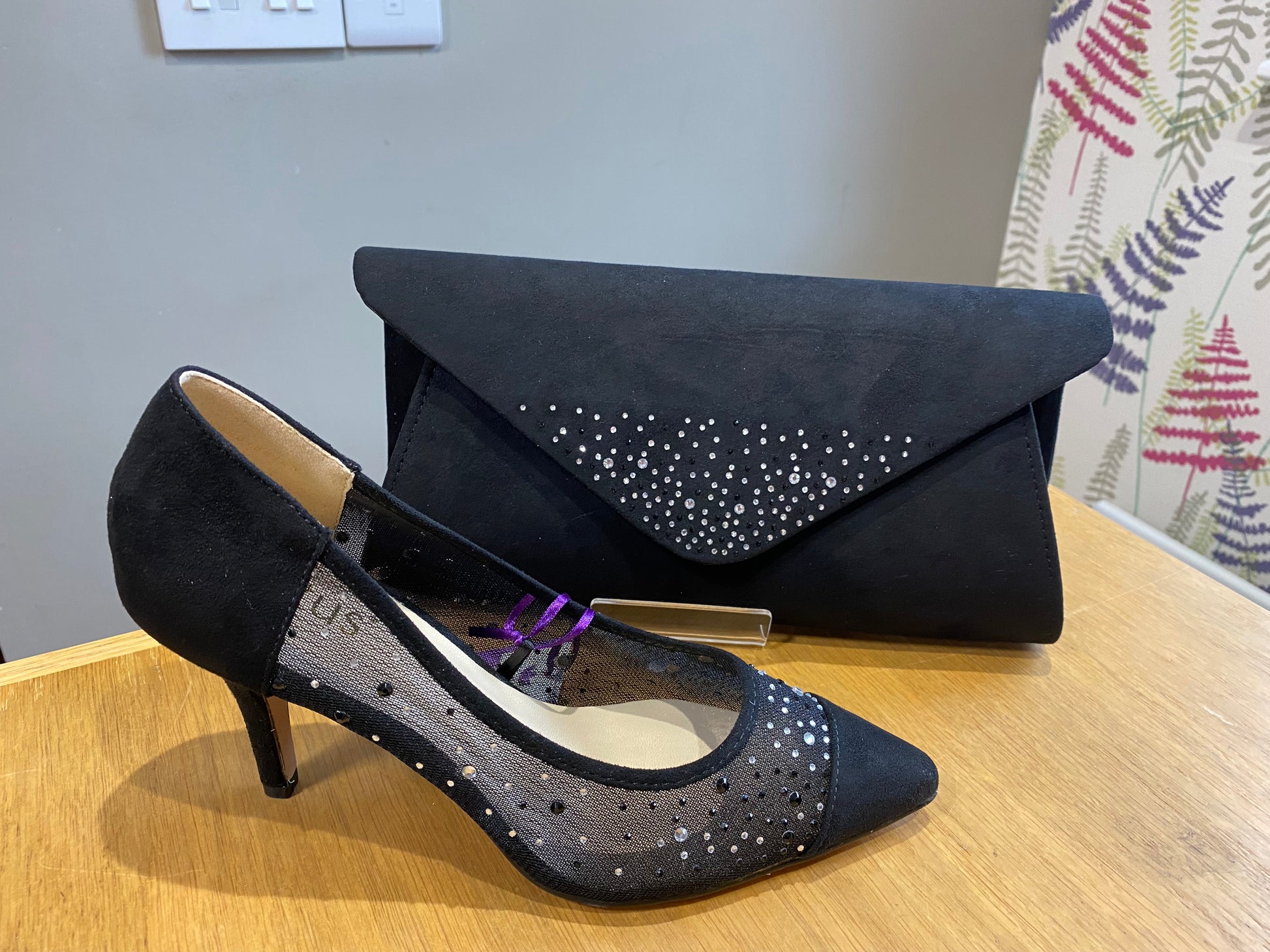 Lotus Pointed Court Shoe with Open Mesh & Diamante Shimmer
