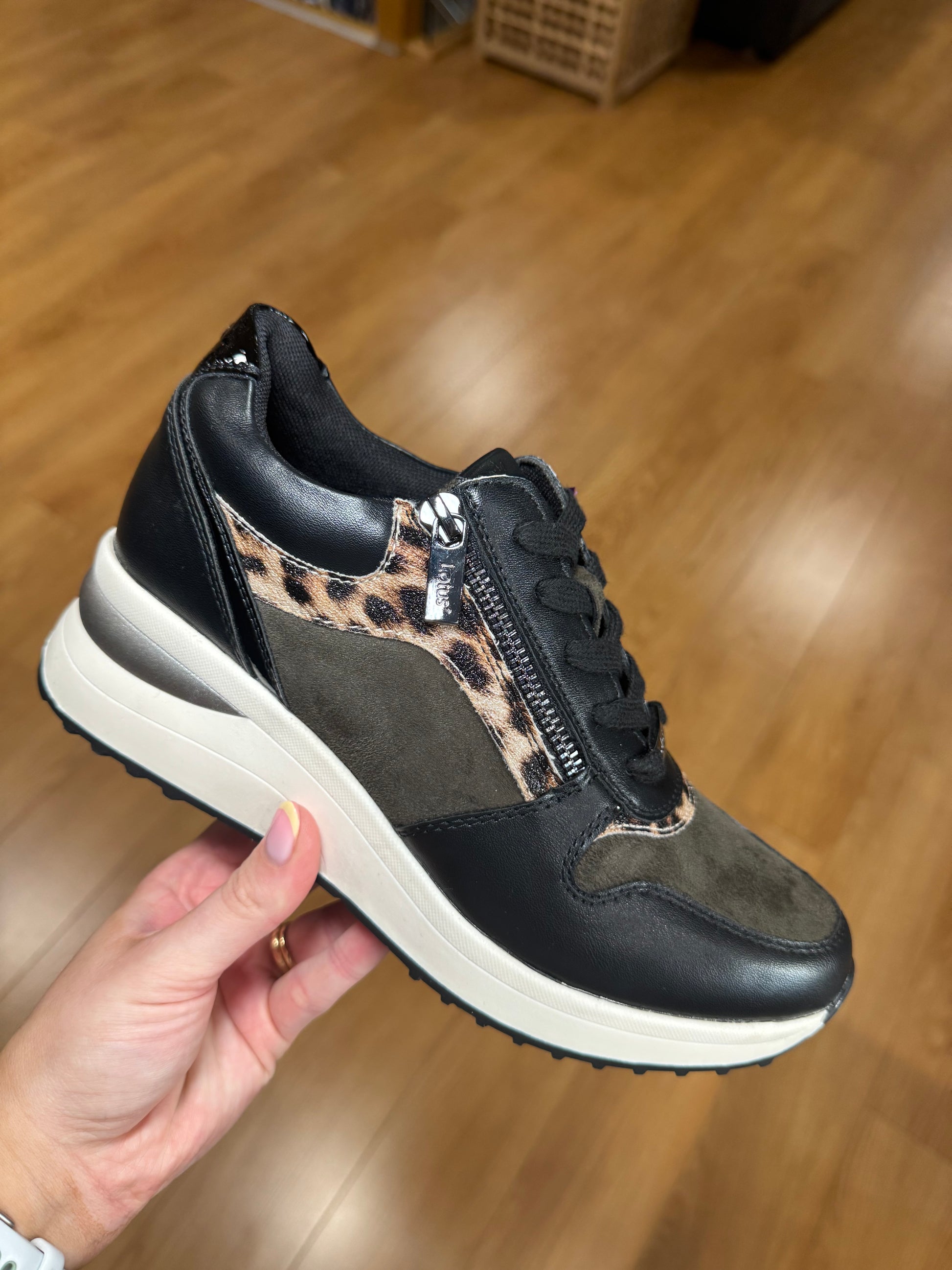 Lotus Lace Up Trainer with Built in Wedge & Zip Opening in Three Toned Animal Print Design