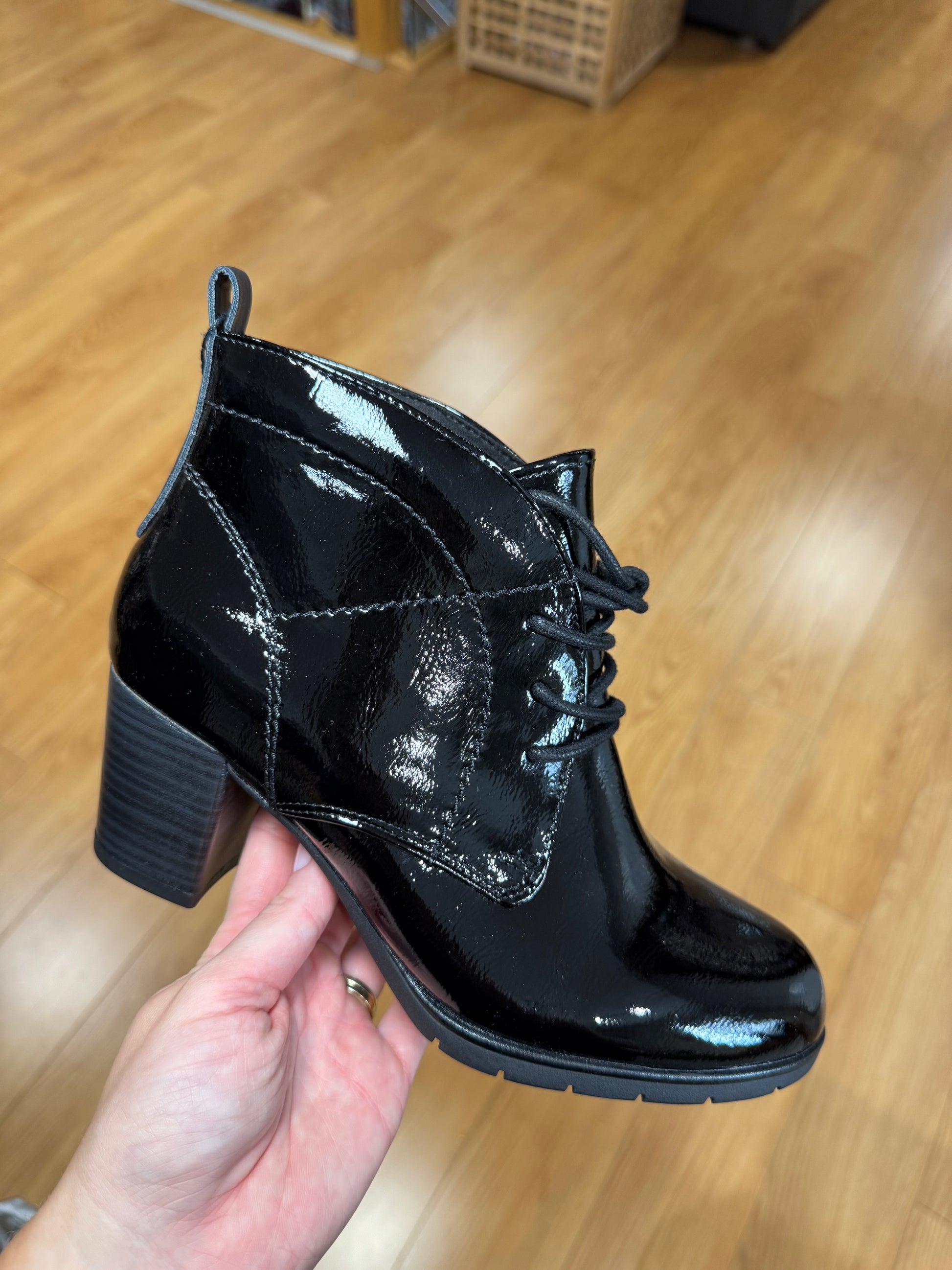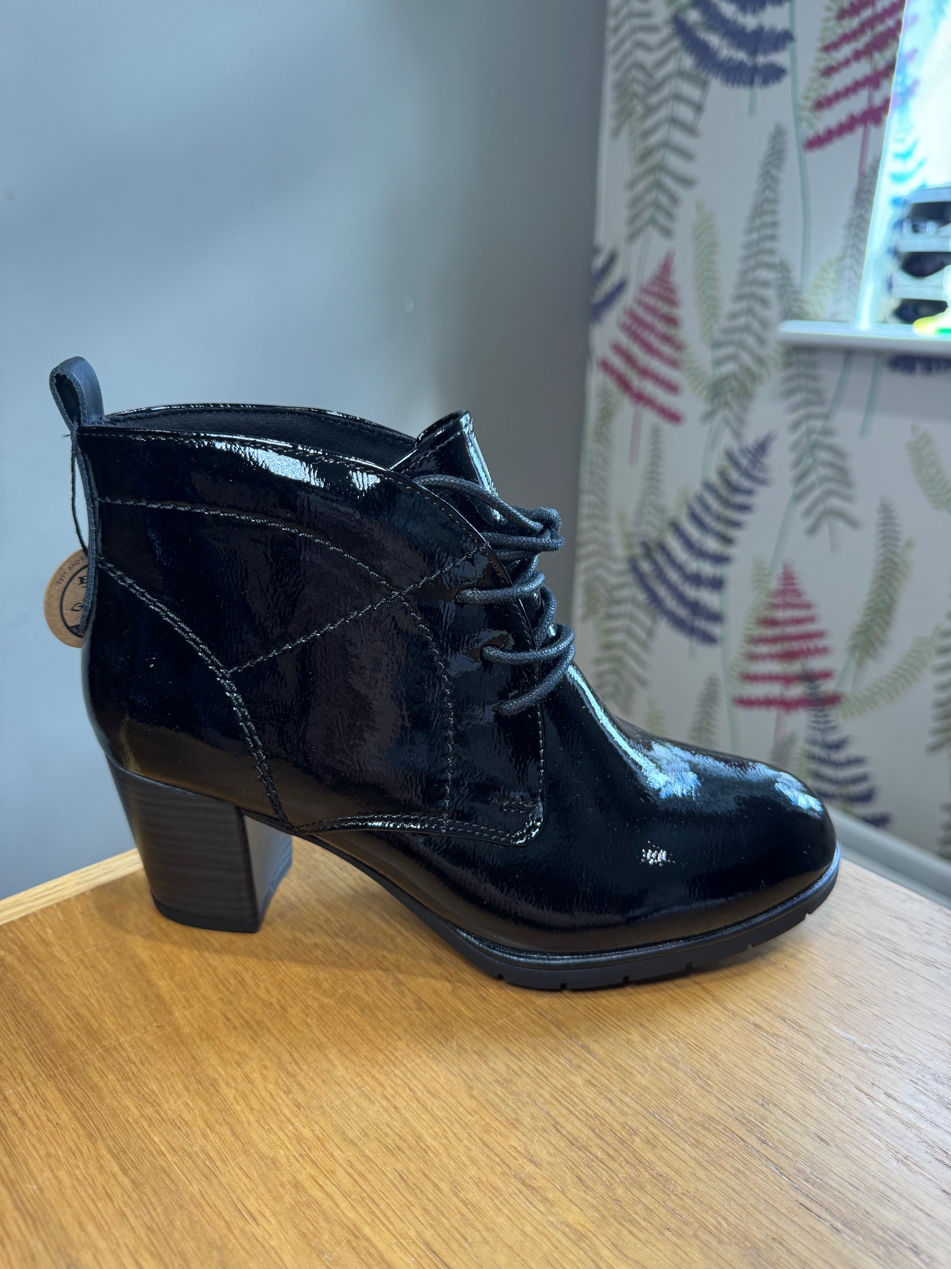 Marco Tozzi Lace Up Ankle Boot in Patent Finish