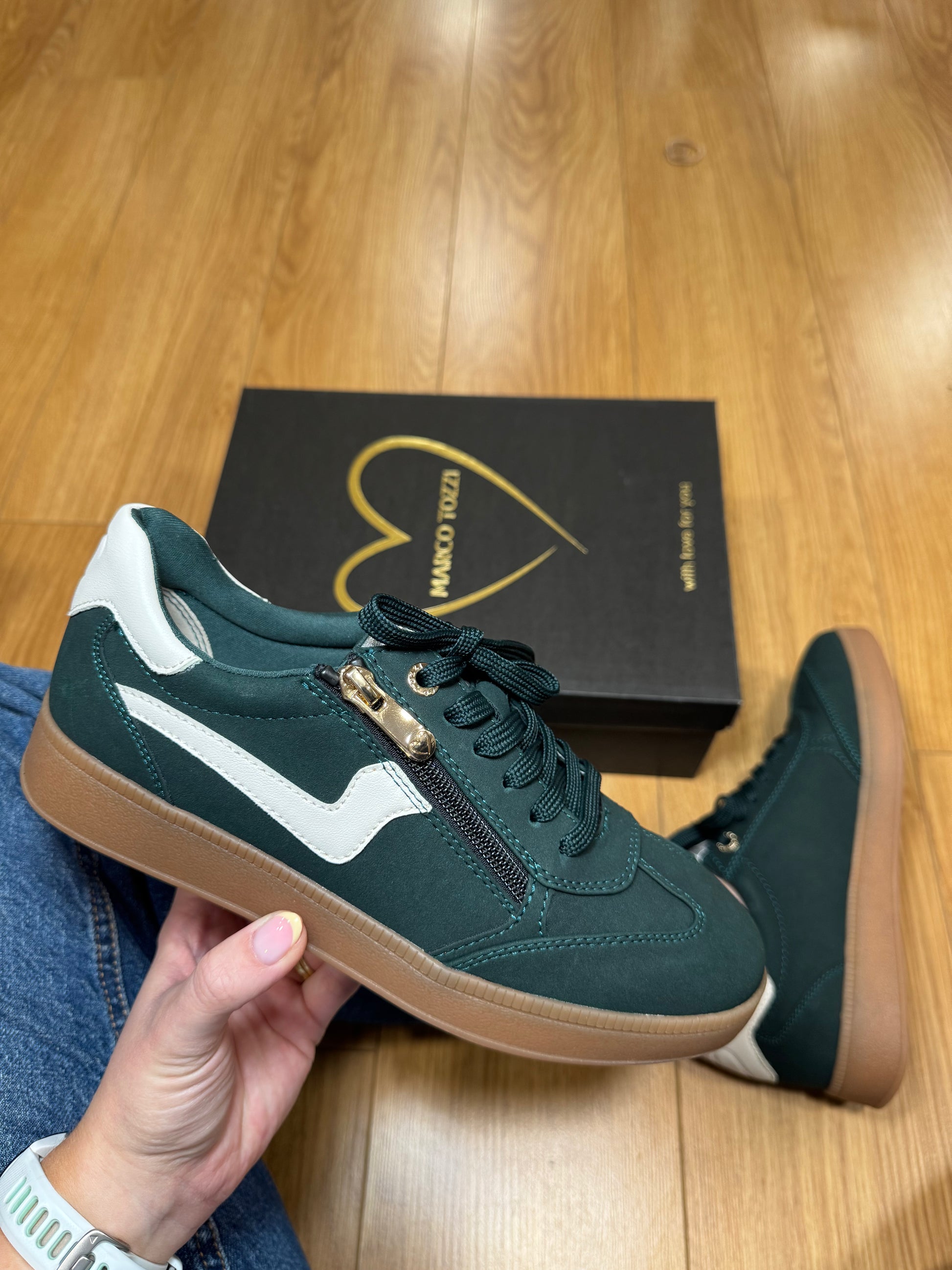 Marco Tozzi Bottle Green/Cream Zip Trainer