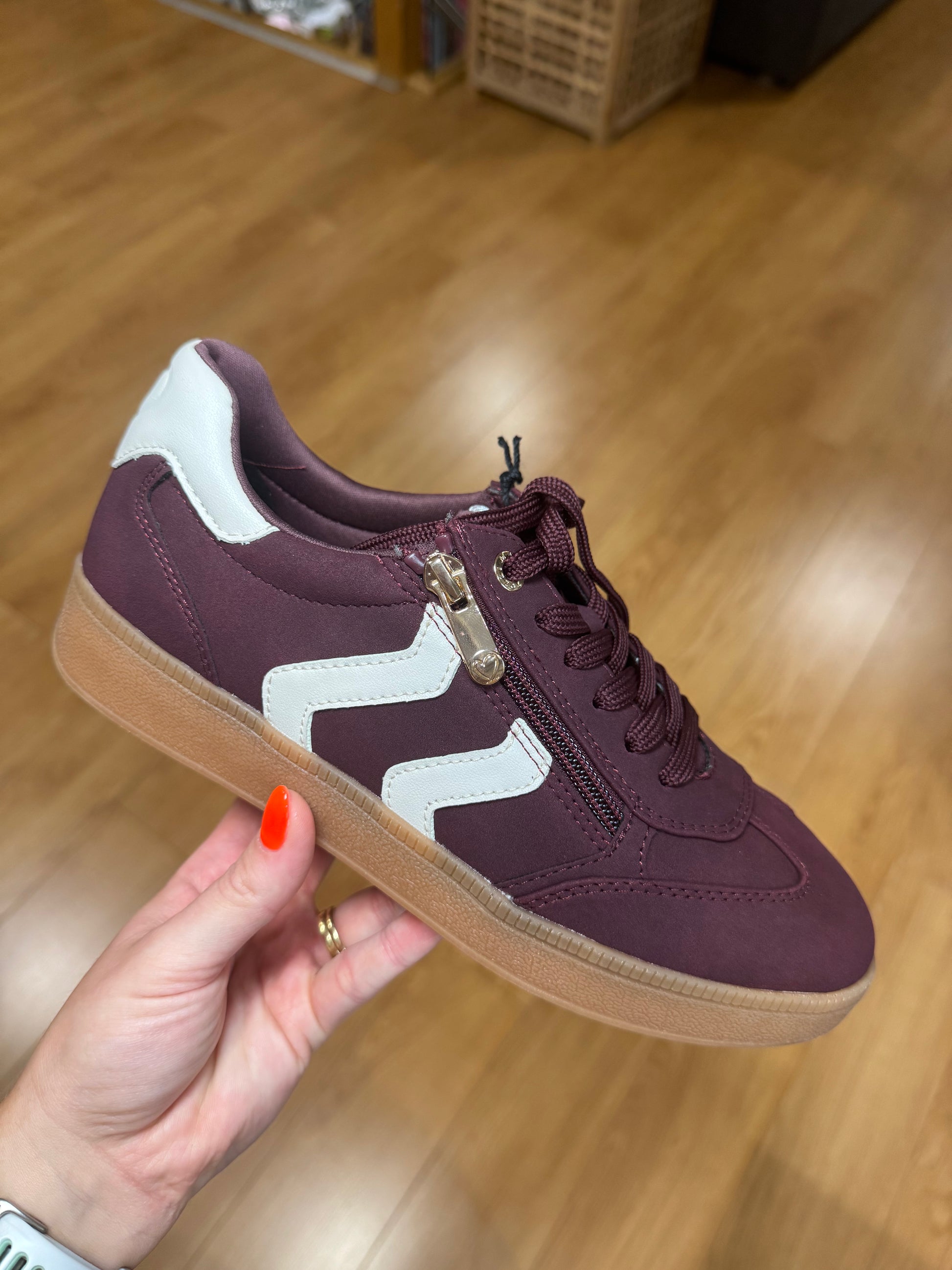 Marco Tozzi Burgundy/Cream Zip Trainer