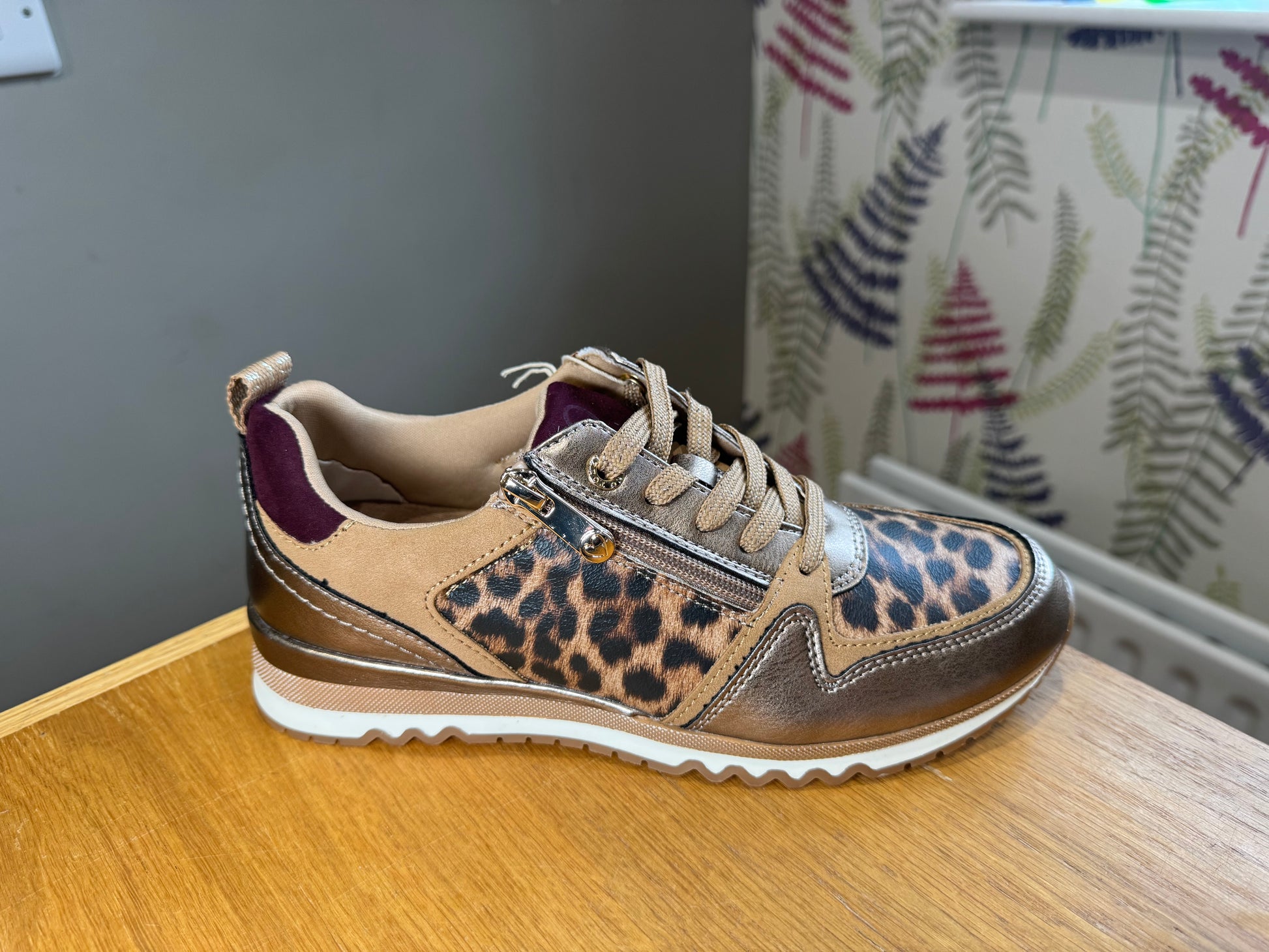 Marco Tozzi Leopard/Burgundy Zip Trainer