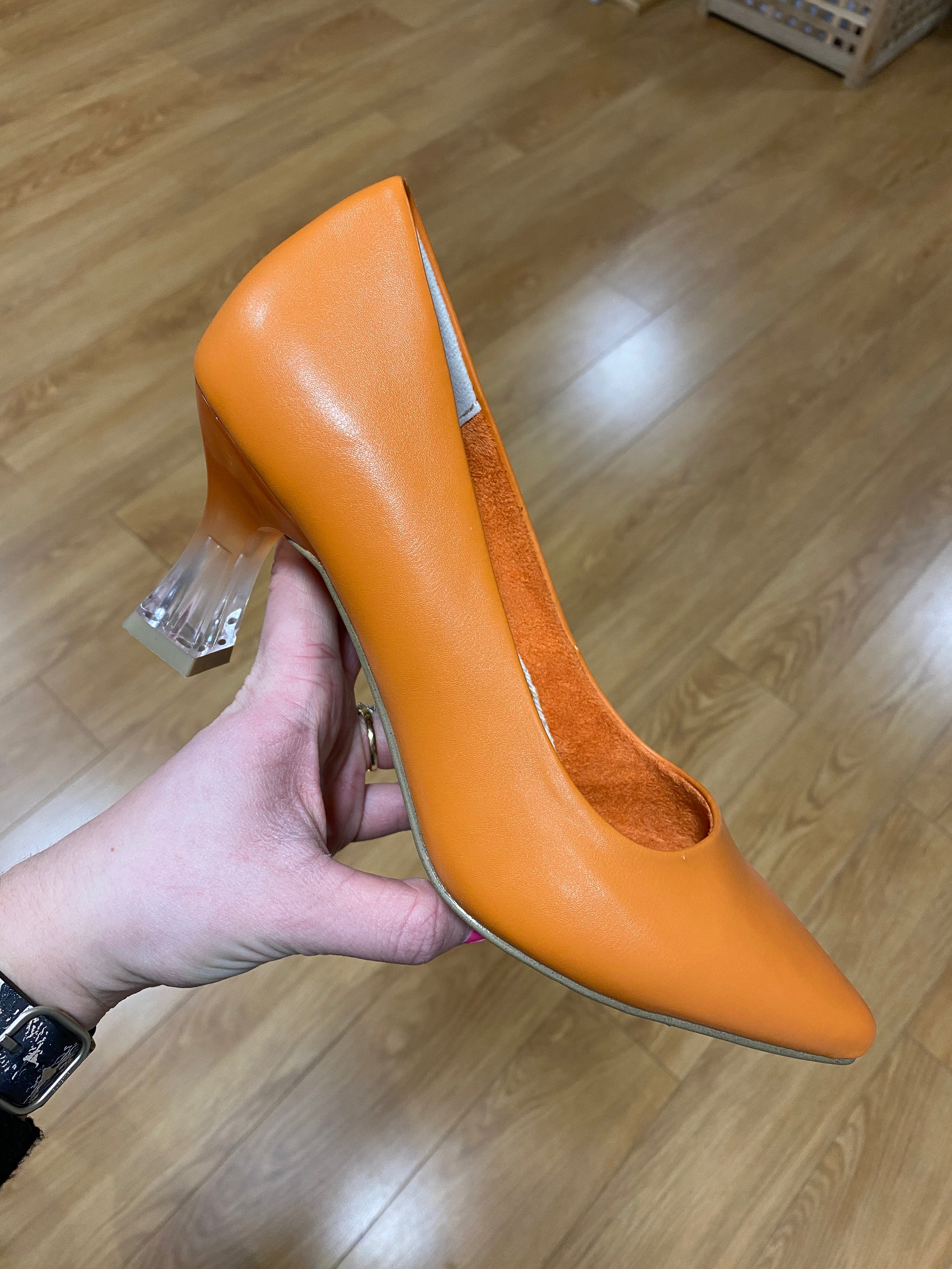 Marco Tozzi Pointed Court Shoe with Asymmetric Tie Dye Heel (Mango into Clear)