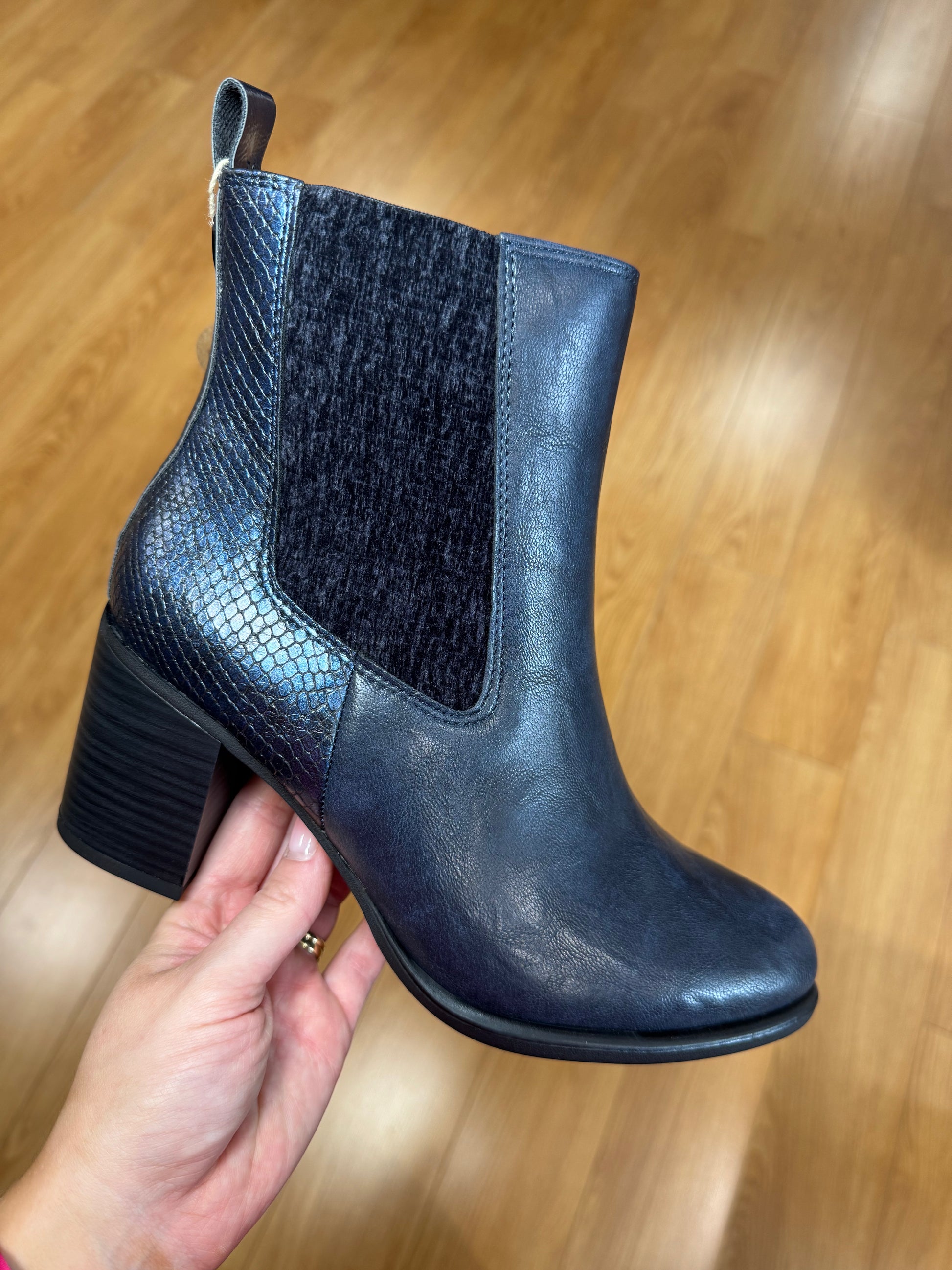 Marco Tozzi Chelsea Style Boot with Block Heel, Subtle Snakeskin Back & Cord Gusset