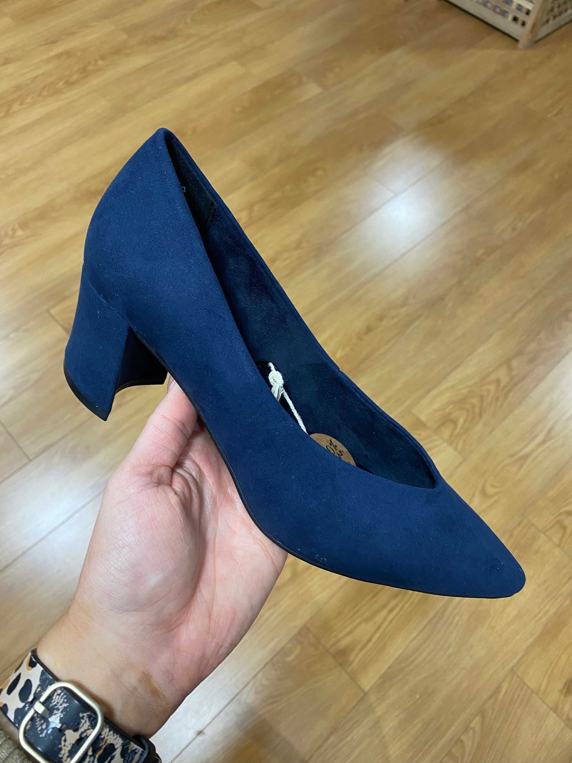 Marco Tozzi Triangular Block Heel Court Shoe with Pointed Toe