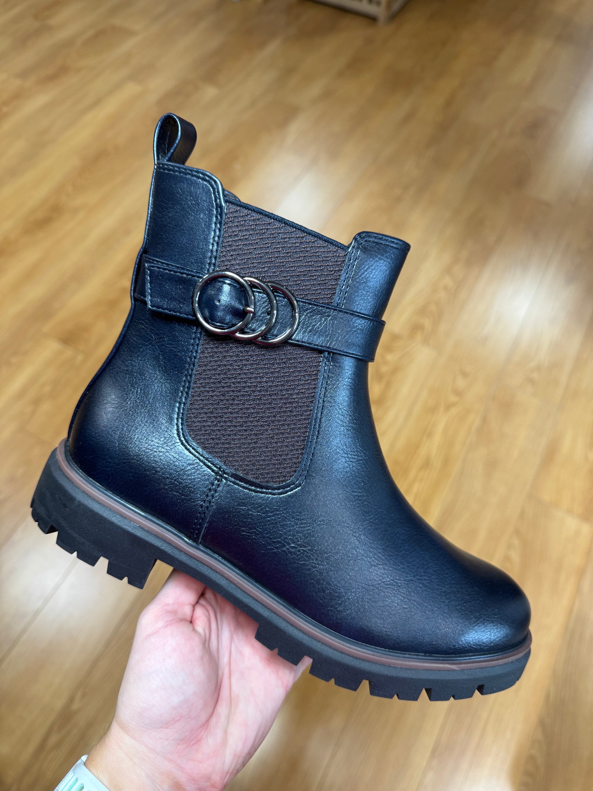 Marco Tozzi Flat Chelsea Style Boot with Contrasting Gusset/Trim, Buckle Detail & Inside Zip Opening