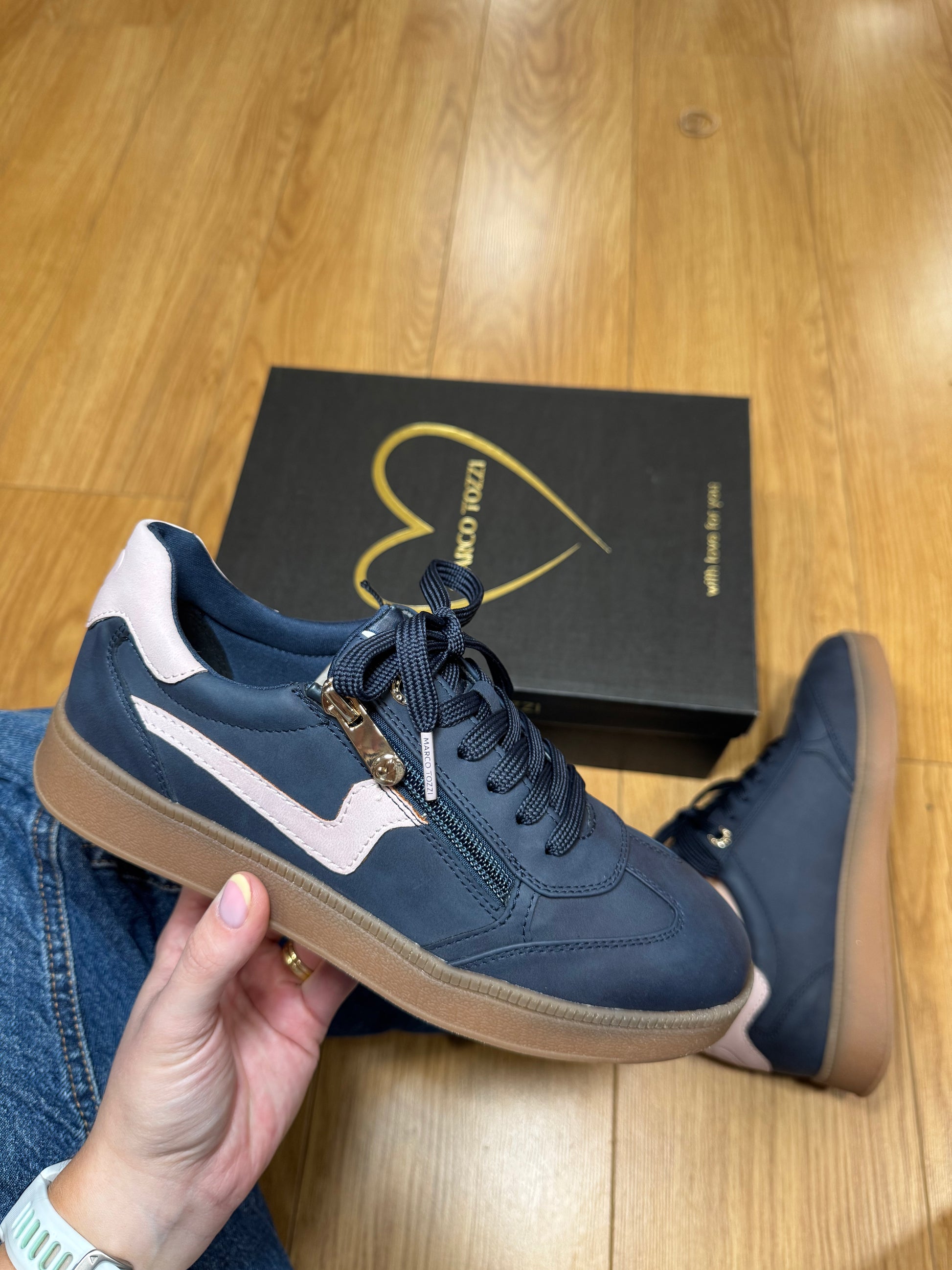 Marco Tozzi Lace Up Trainer (Zip Opening) with Contrasting Design & Gum Sole
