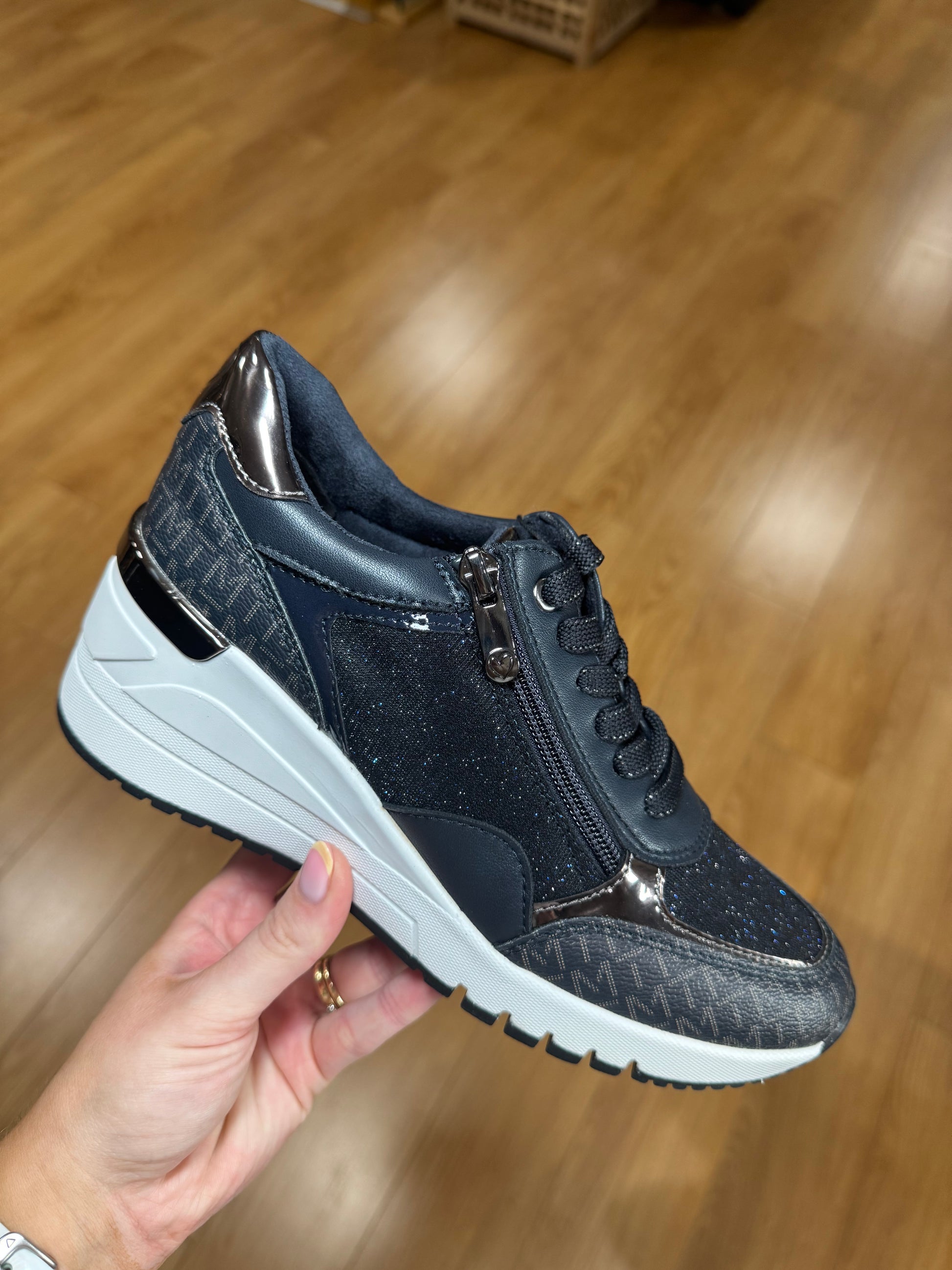 Marco Tozzi Lace Up Trainer (Zip Opening) with Built In Wedge & Sparkle/Logo Panelling