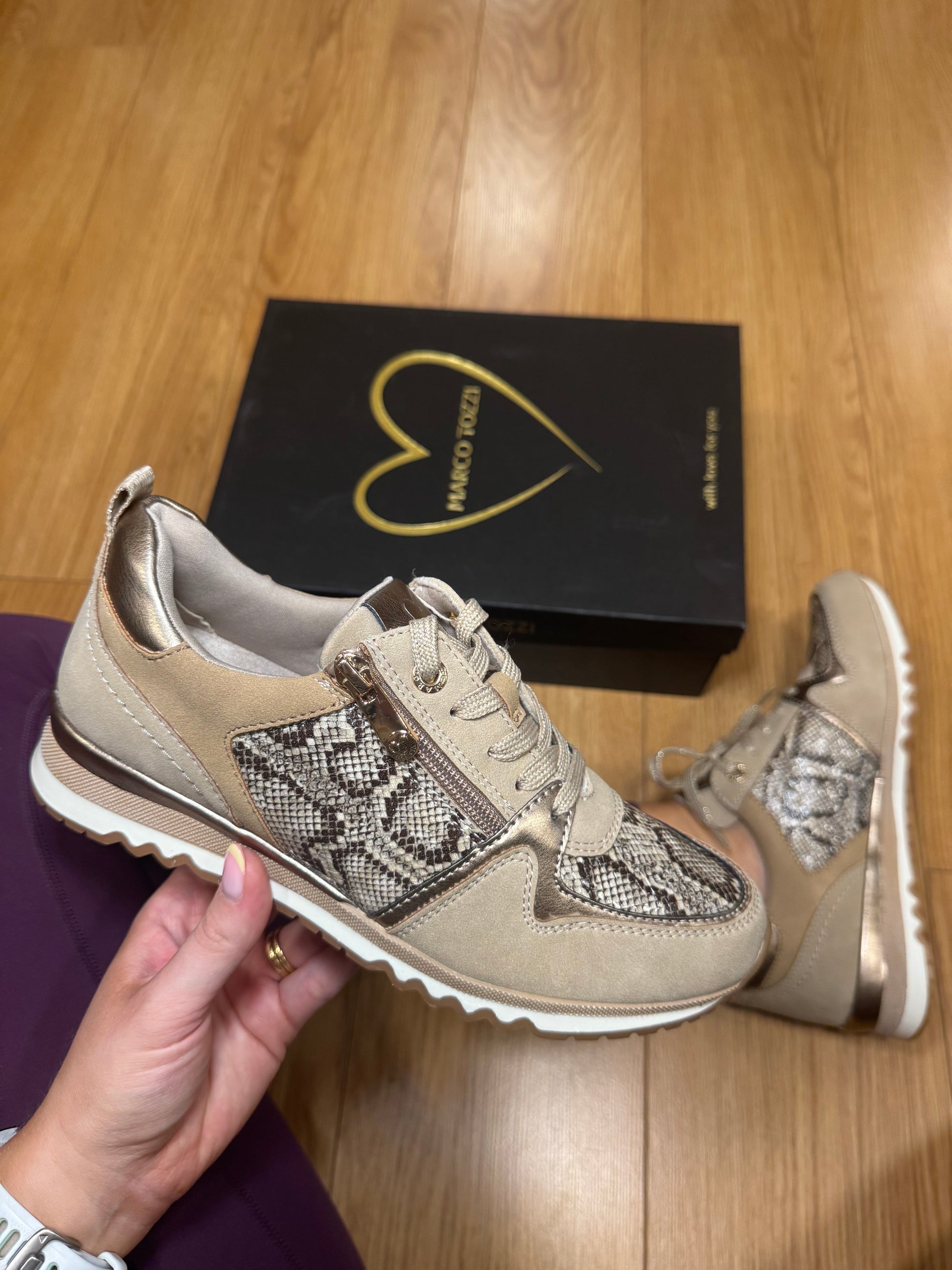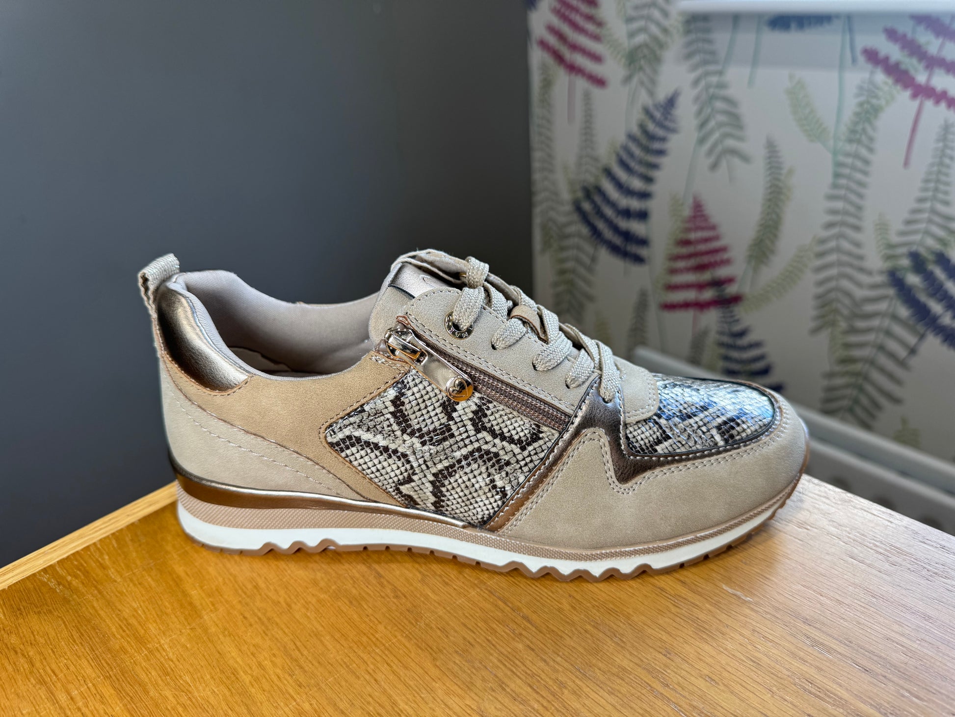 Marco Tozzi Taupe Snake Zip Trainer