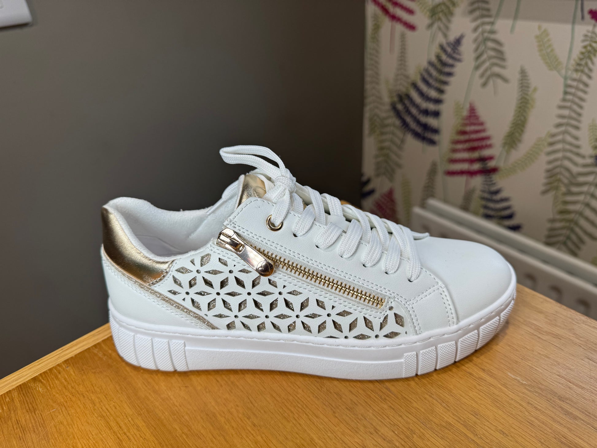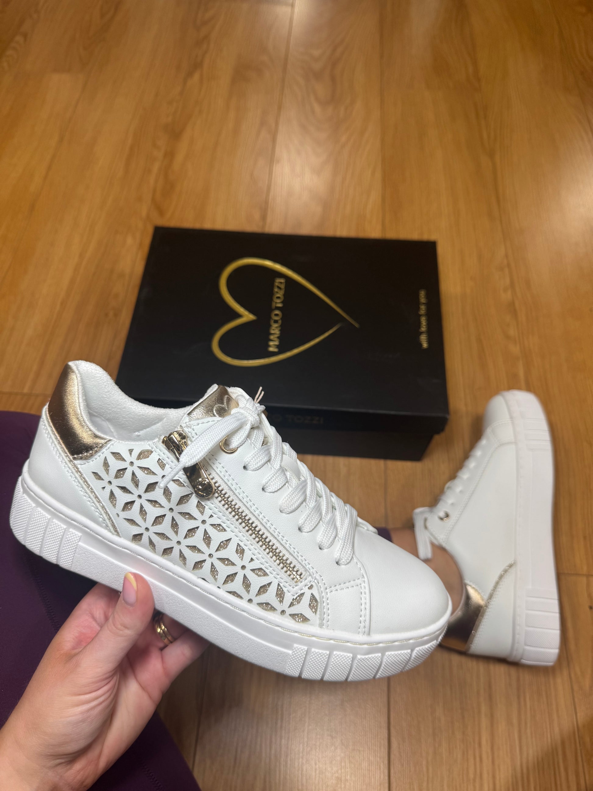 Marco Tozzi White/Gold Zip Trainer