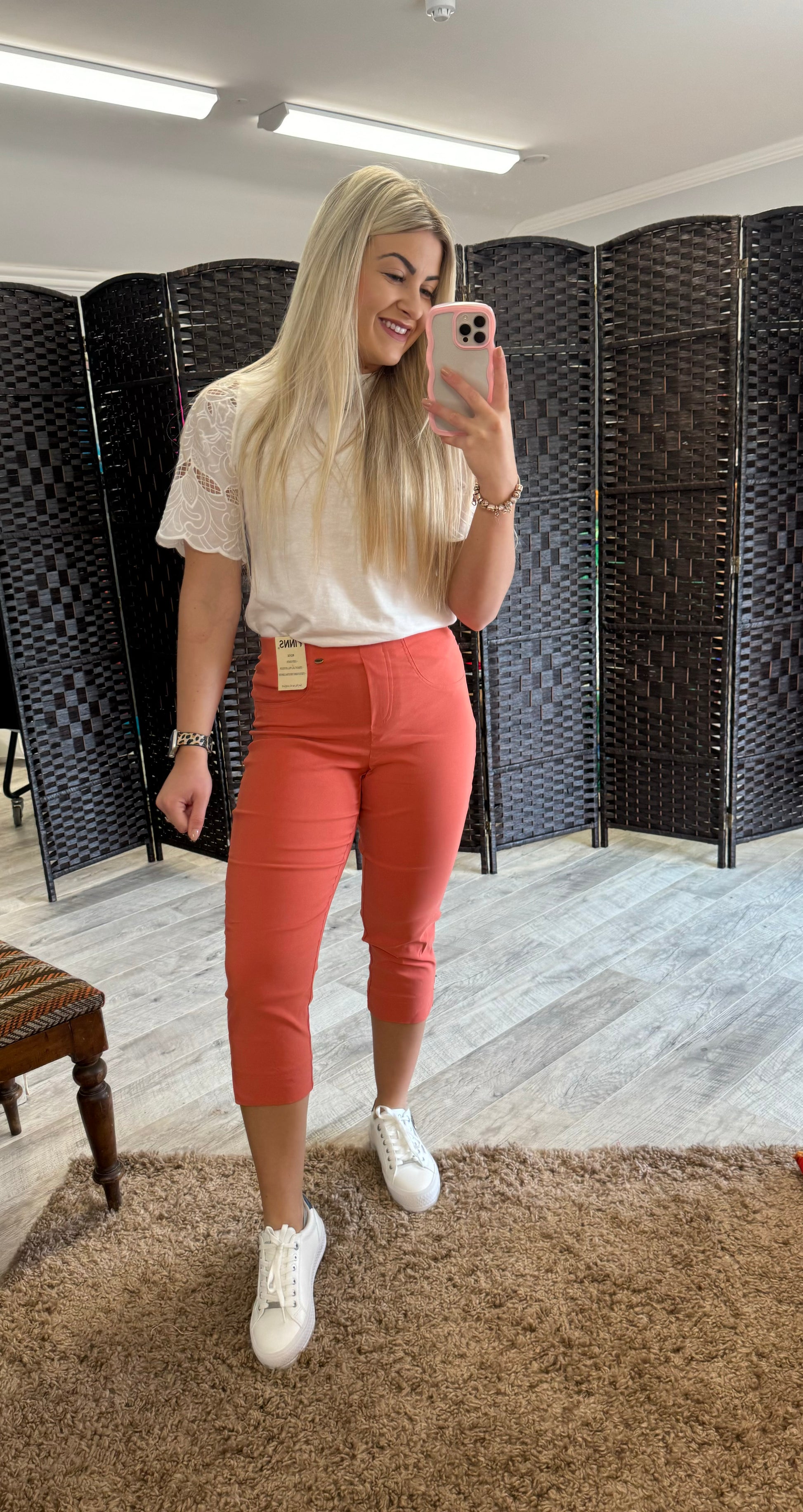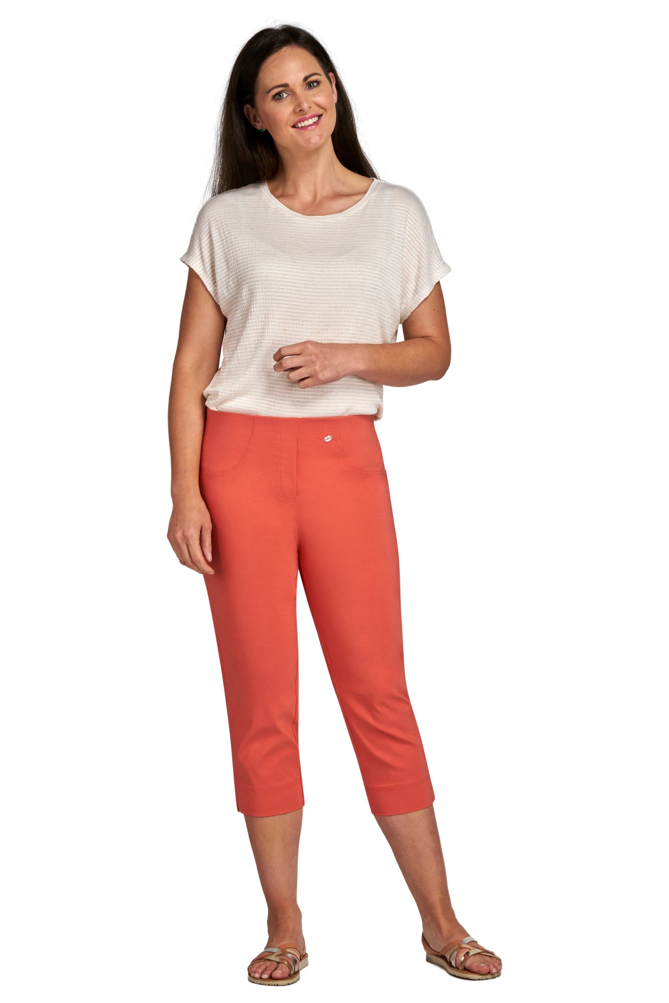 Figure Sculpting Bengaline Crop Trousers.  Flattering slim fit three-quarter length trouser, with elasticated waist and tummy control. Super stretchy fit to provide all-day comfort.