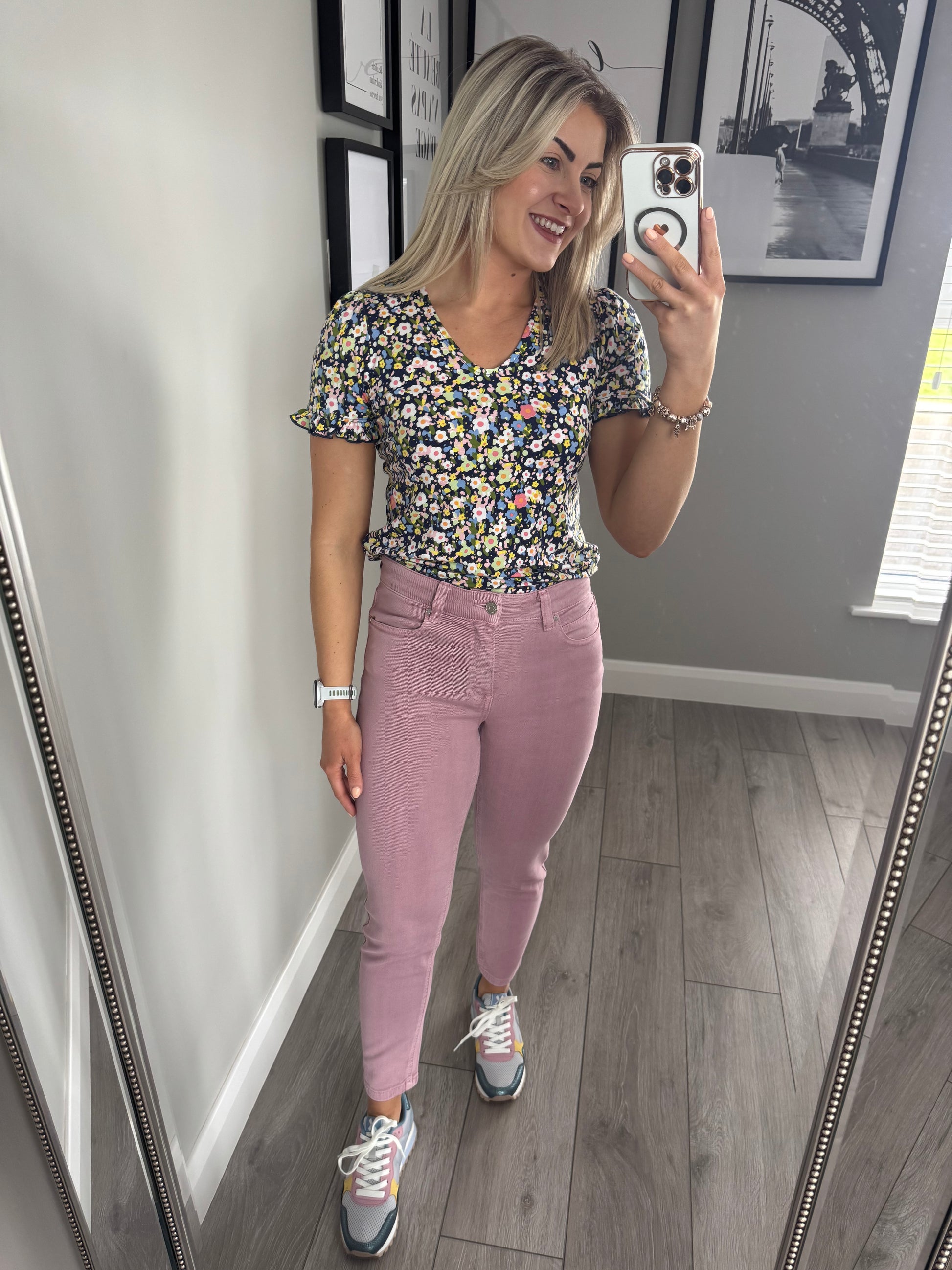 -Pinns slim fit stretch ankle grazer jean in pink marl. Button & zip fastening with double pockets.376CT