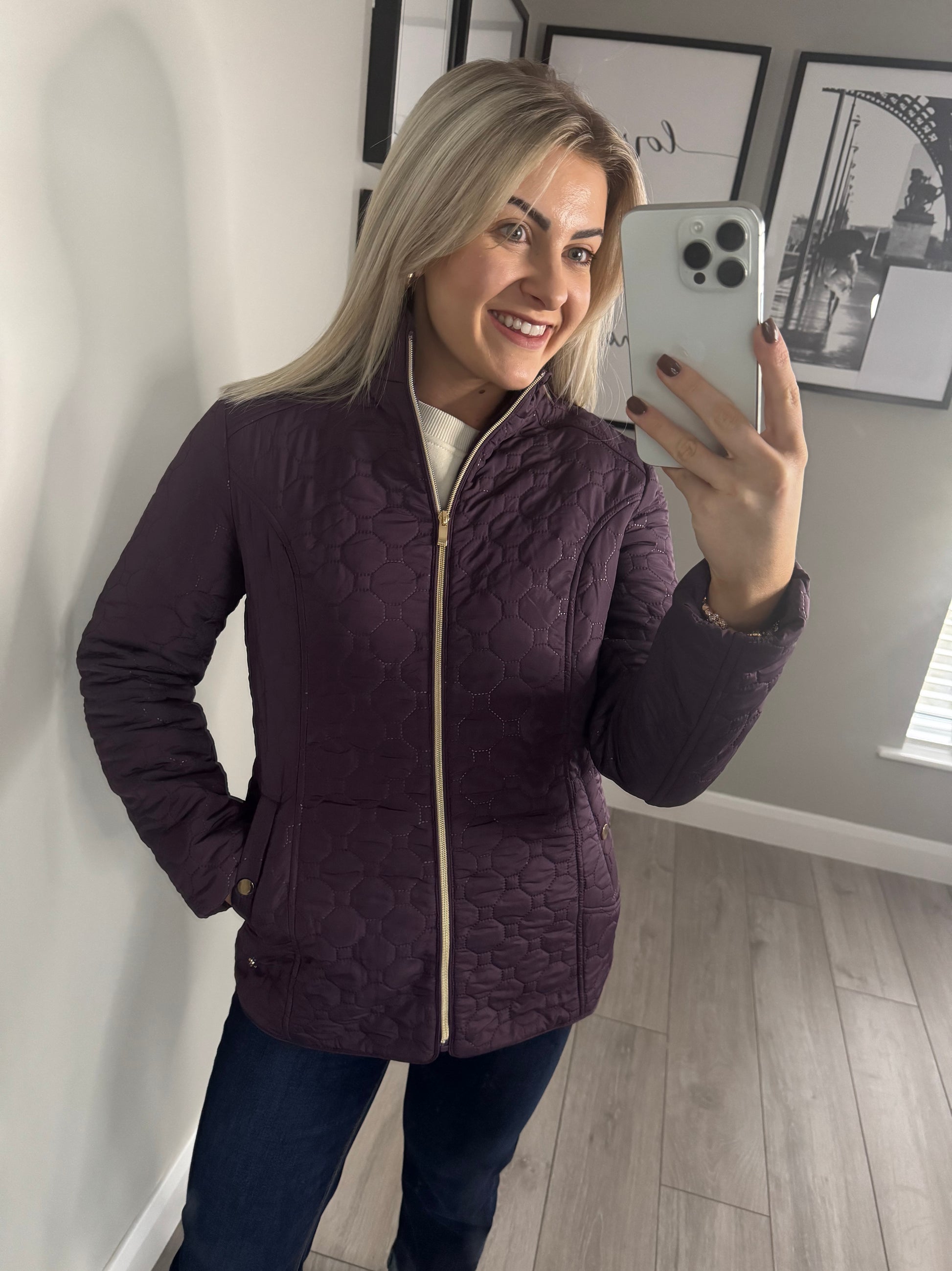 -Jessica Graaf plum anorak with subtle diamond quilt design & zip through fastening