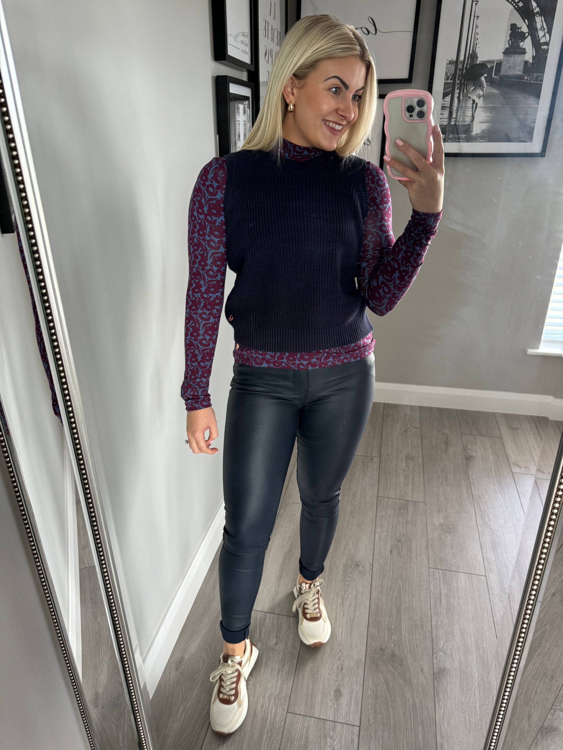 Our best selling Rant & Rave leather look jean is back.. in navy!! A strong favourite every Winter the navy is a welcome addition for your smart casual wardrobe. Wether it's for a day out with the girls or a Saturday night on the tiles the leather look is so much more than a basic jean. A sculpting fit in a light, soft & breathable material they are both stylish & comfortable. Button & zip fastening.