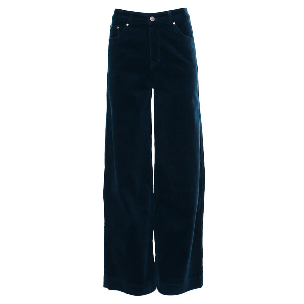 -Rant & Rave wide leg cord jean in teal. Zip & button fastening, finished with large hem.