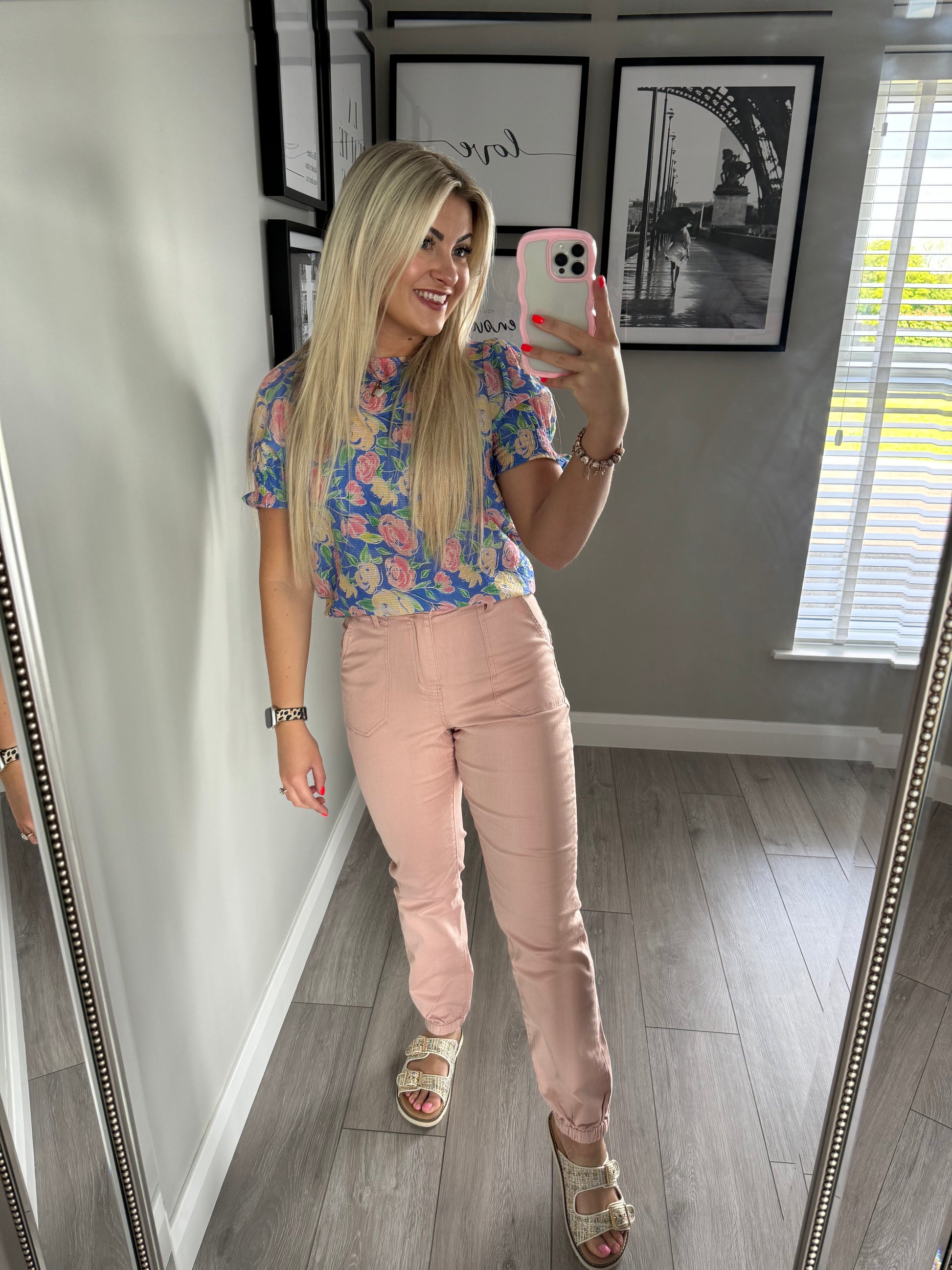 Rant & Rave 'Prue' trousers are bang on style this Summer! In cargo style they have large double pockets and cuffed hem line whilst maintaining a straight leg. In stunning soft blush they're super feminine whilst having an edge.