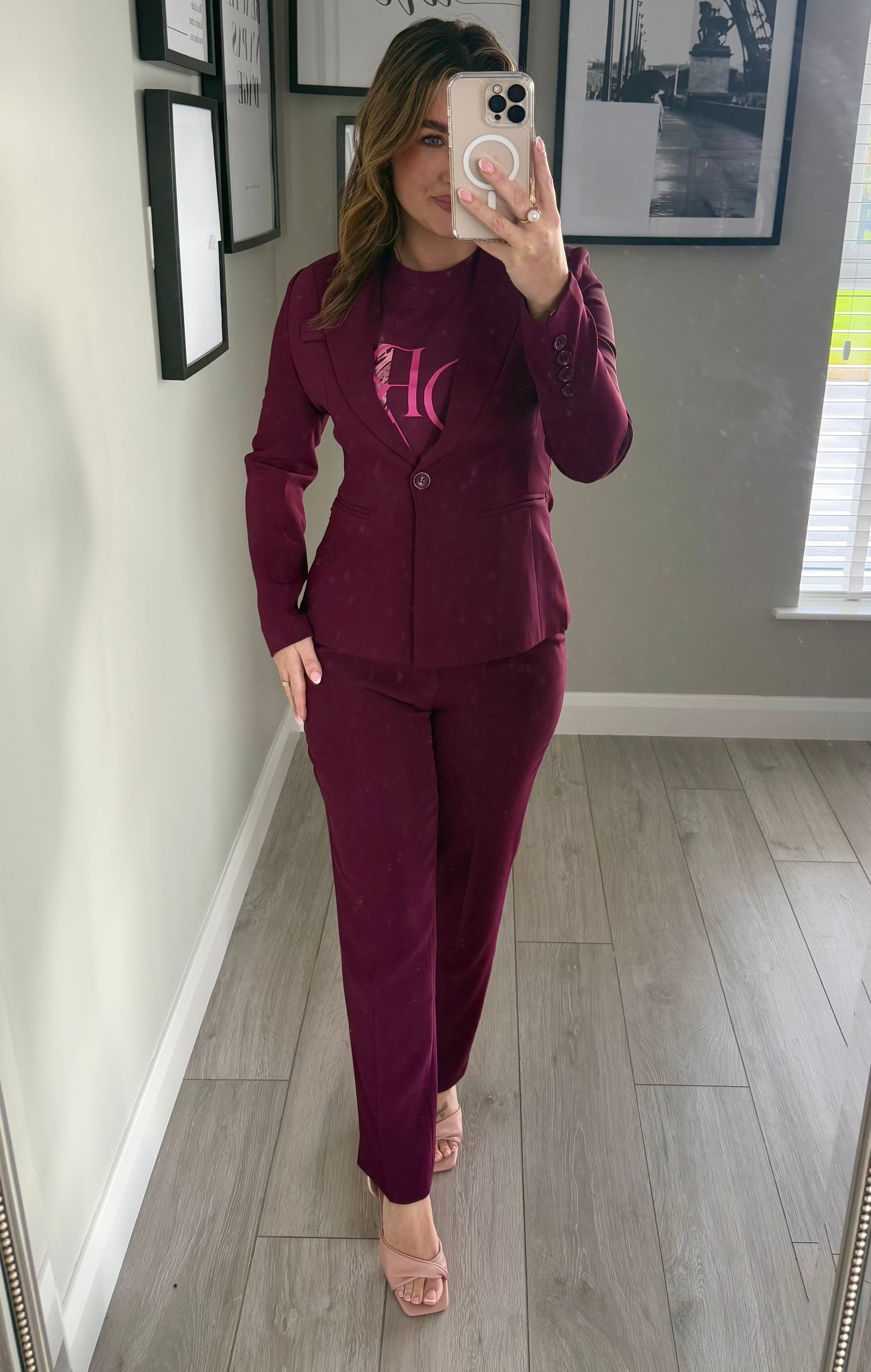 -Rant & Rave stunning cranberry coloured blazer. With single button fastening & notched lapels it's fully lined with a satin finish & structured shoulders.