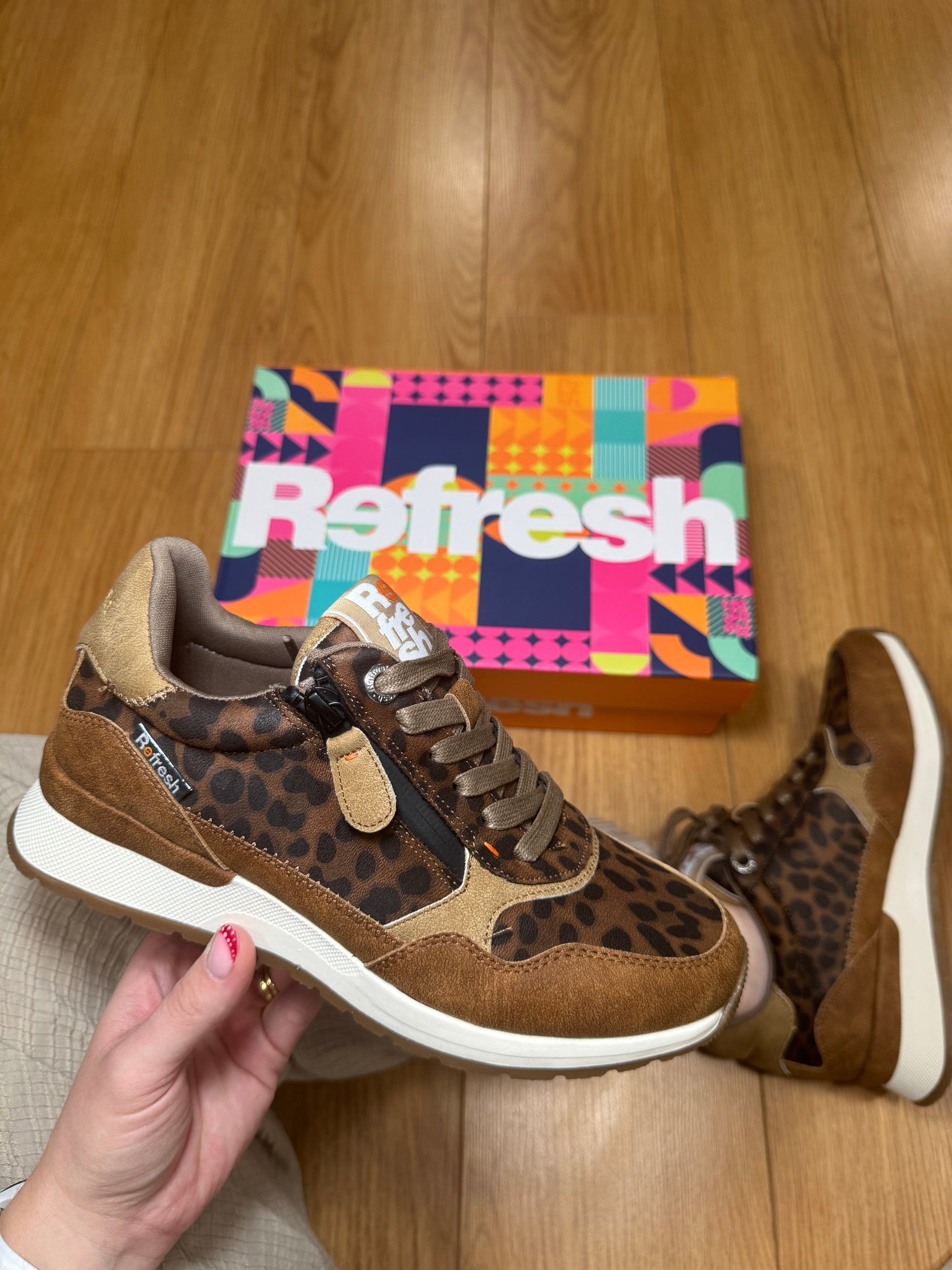 Refresh Lace Up (Zip Opening) Trainer in Leopard Print/Suede Design