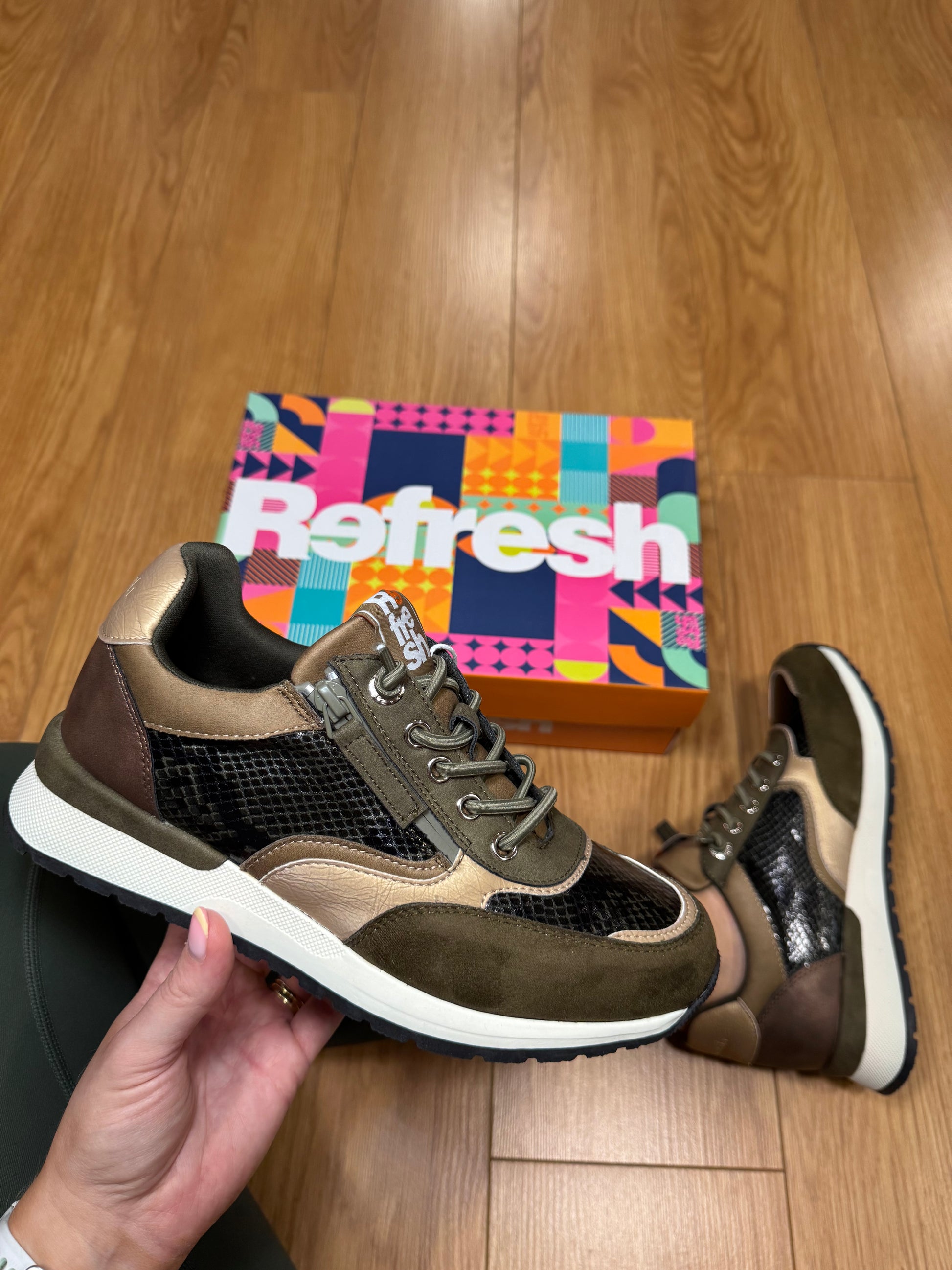 Refresh Lace Up (Elasticated) Trainer in Snake Print Design with Zip Opening