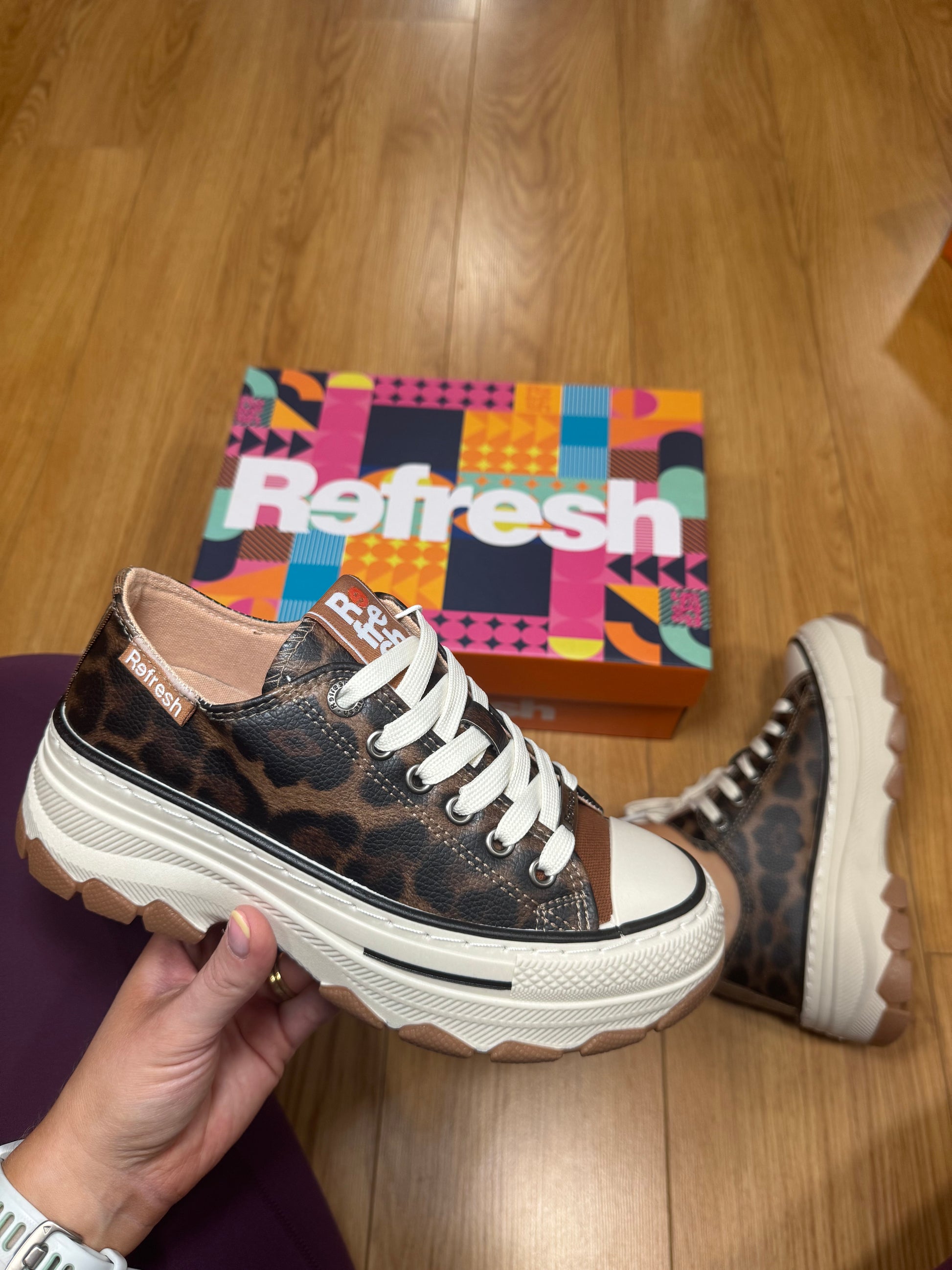 Refresh Lace Up Leopard Print Trainer in Leather Finish with Chunky Platform Sole