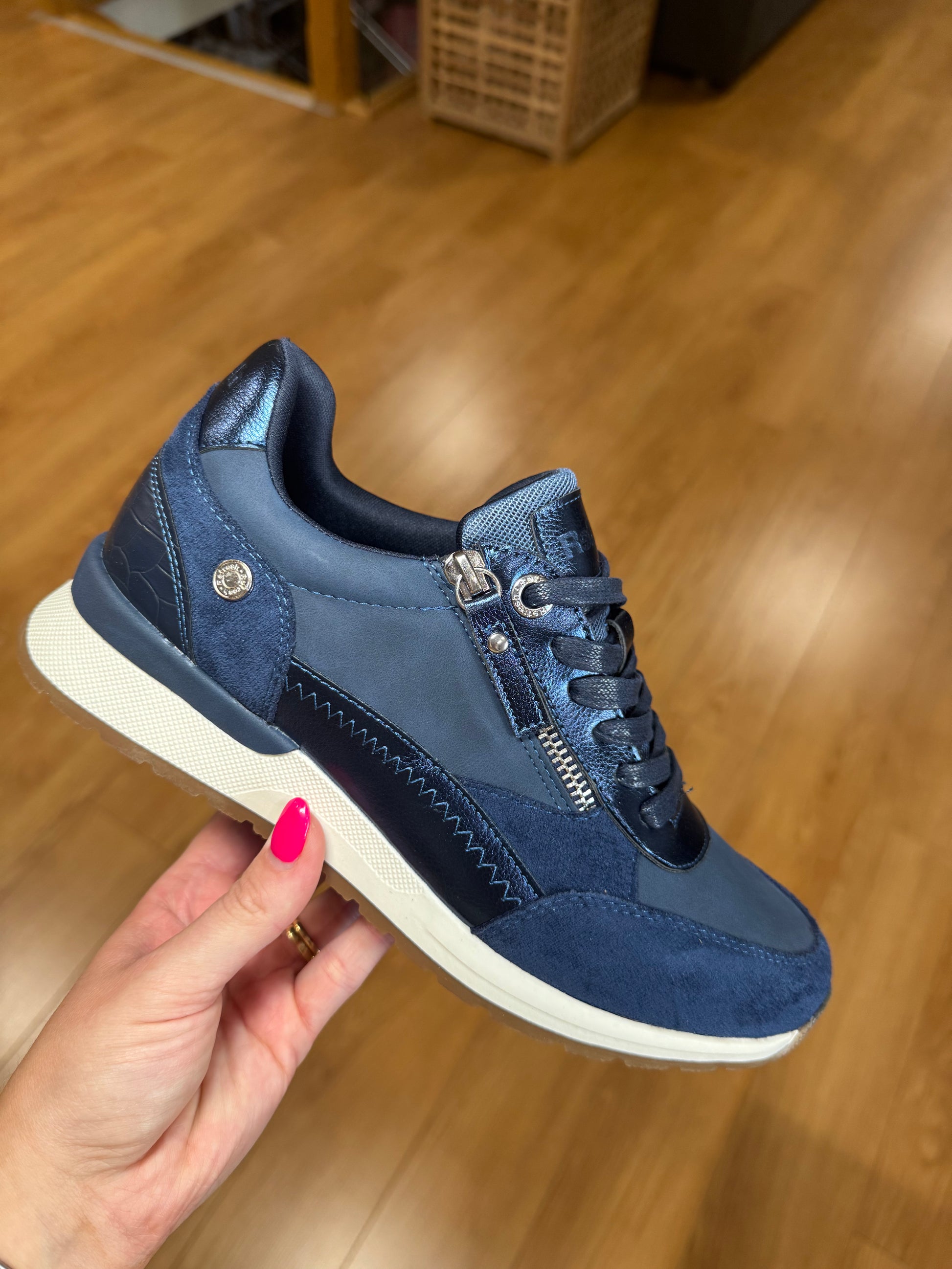 Refresh Lace Up Trainer with Multi Metallic/Suede Panels & Zip Opening