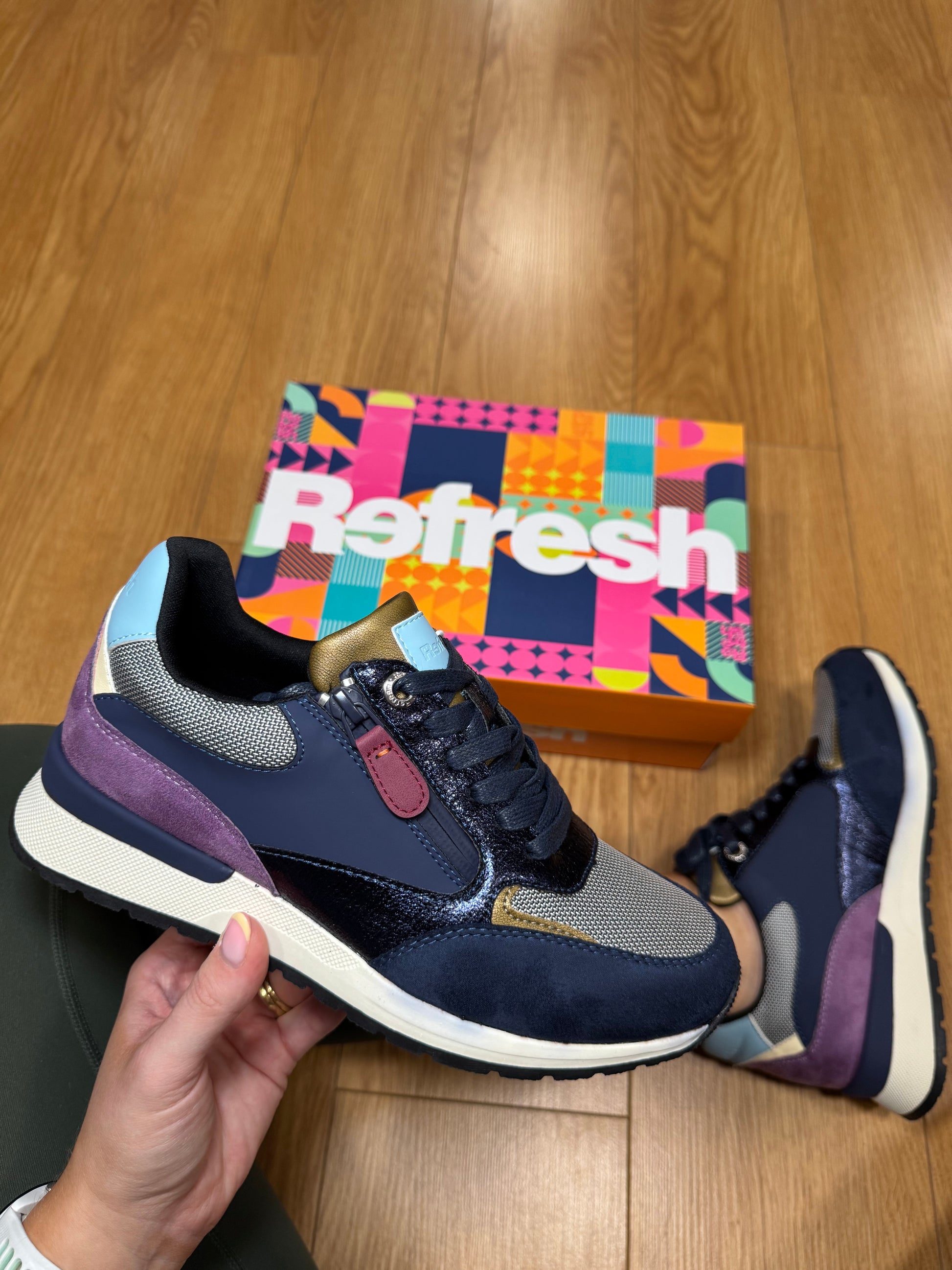 Refresh Lace Up (Zip Opening) Trainer with Multi Coloured Panelling & Mesh Design