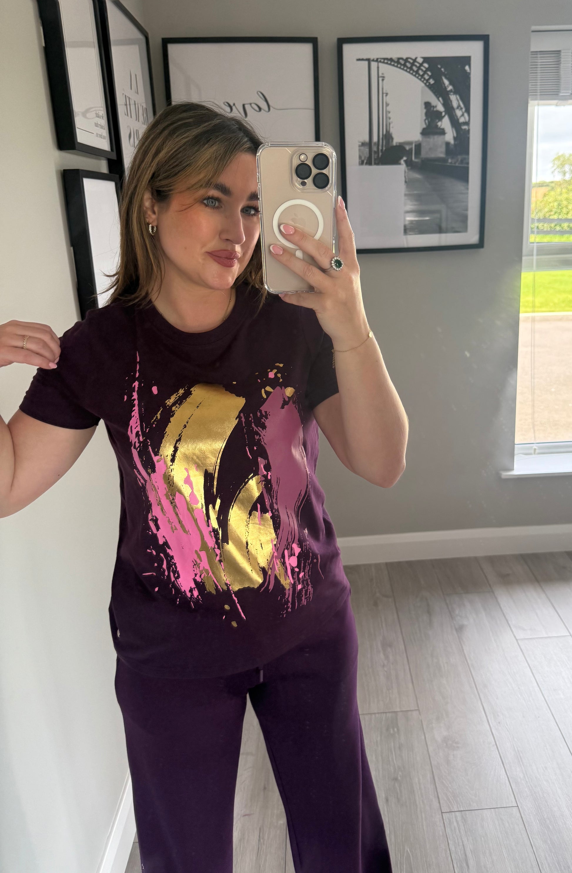 -Relax & Renew short sleeve tee with multi coloured motif design. Round neckline with subtle branding.