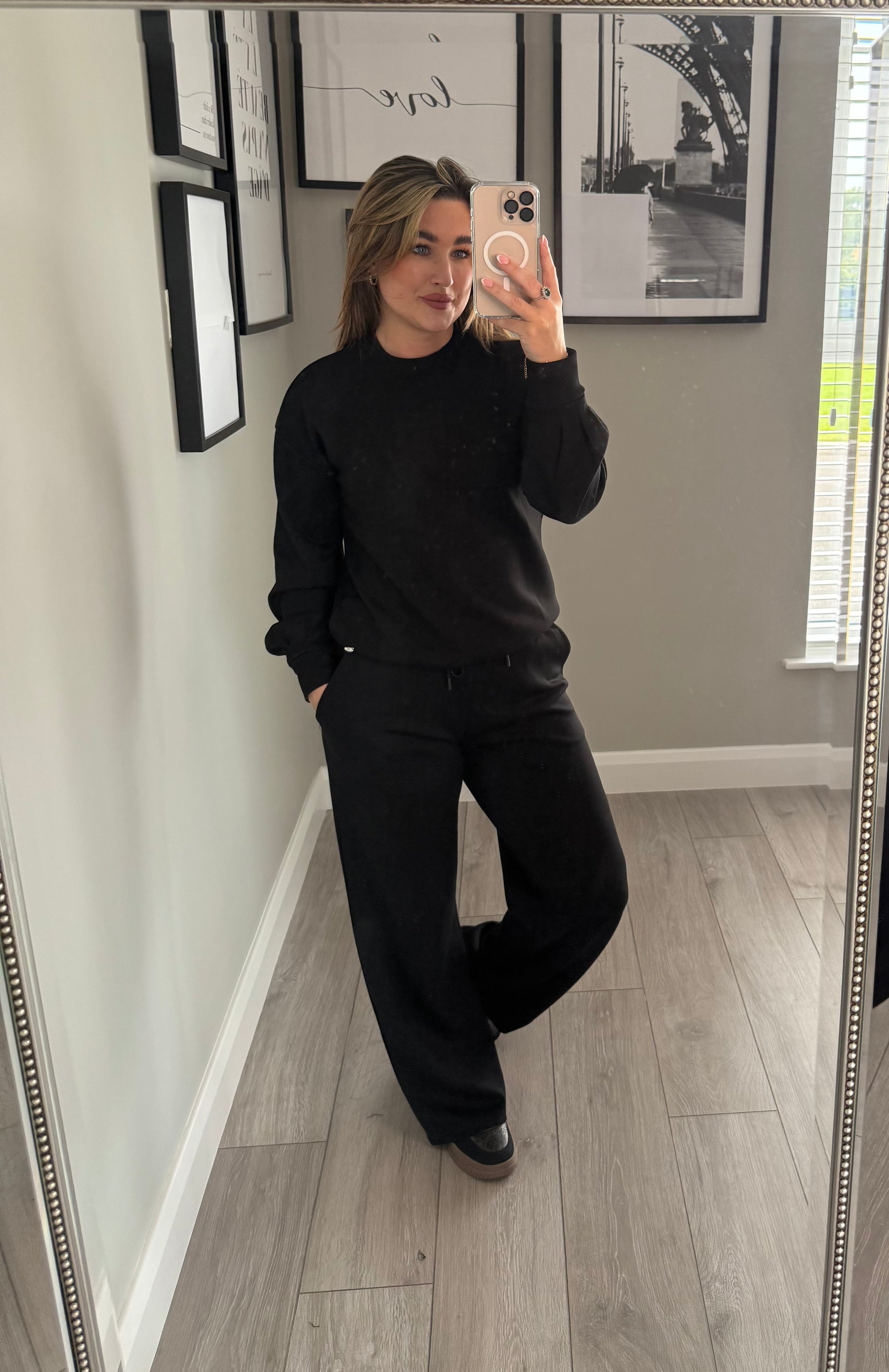 -Relax & Renew soft touch pull on jogger in black. Elasticated waistband & double pockets.