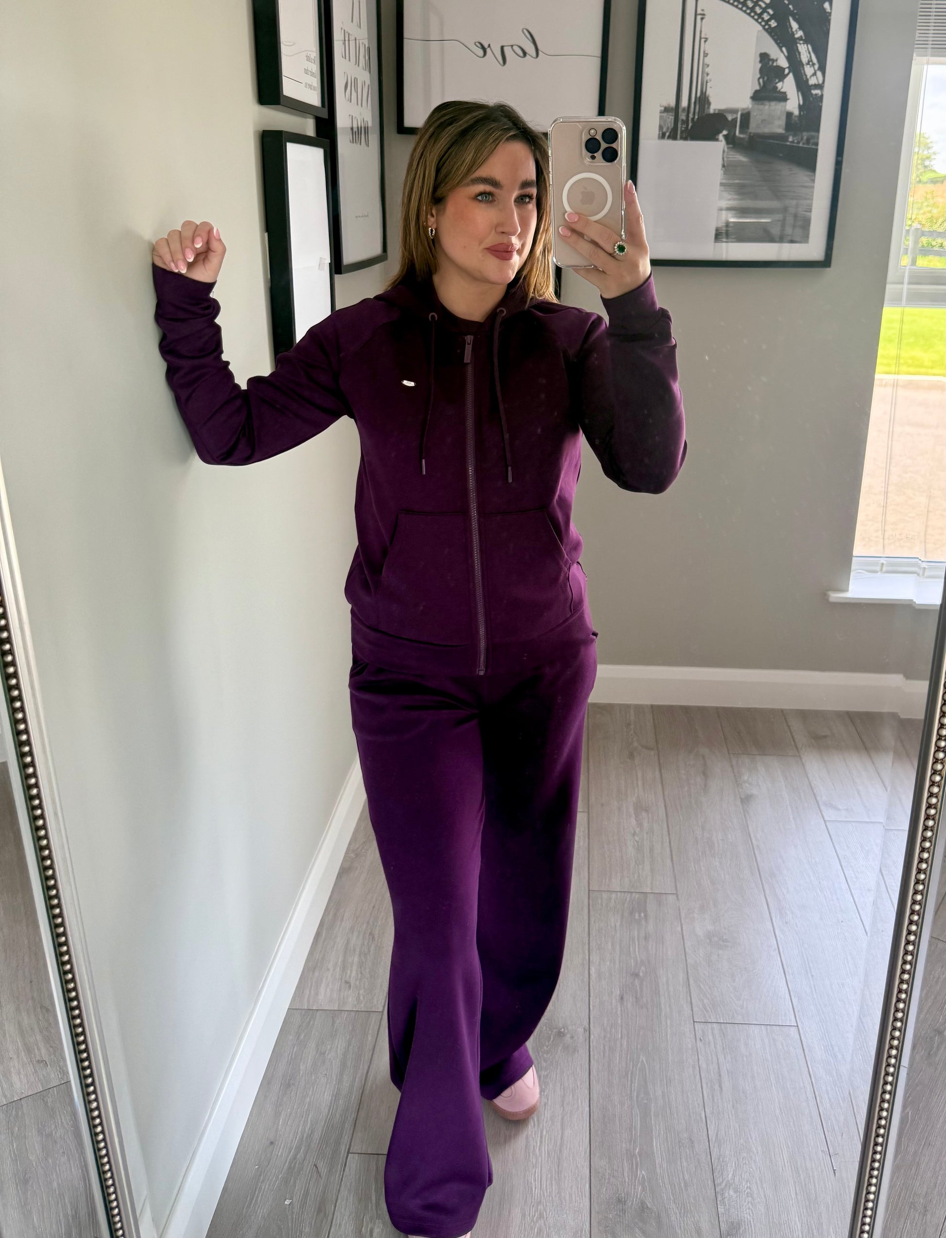 -Relax & Renew soft touch pull on jogger in plum. Elasticated waistband & double pockets.