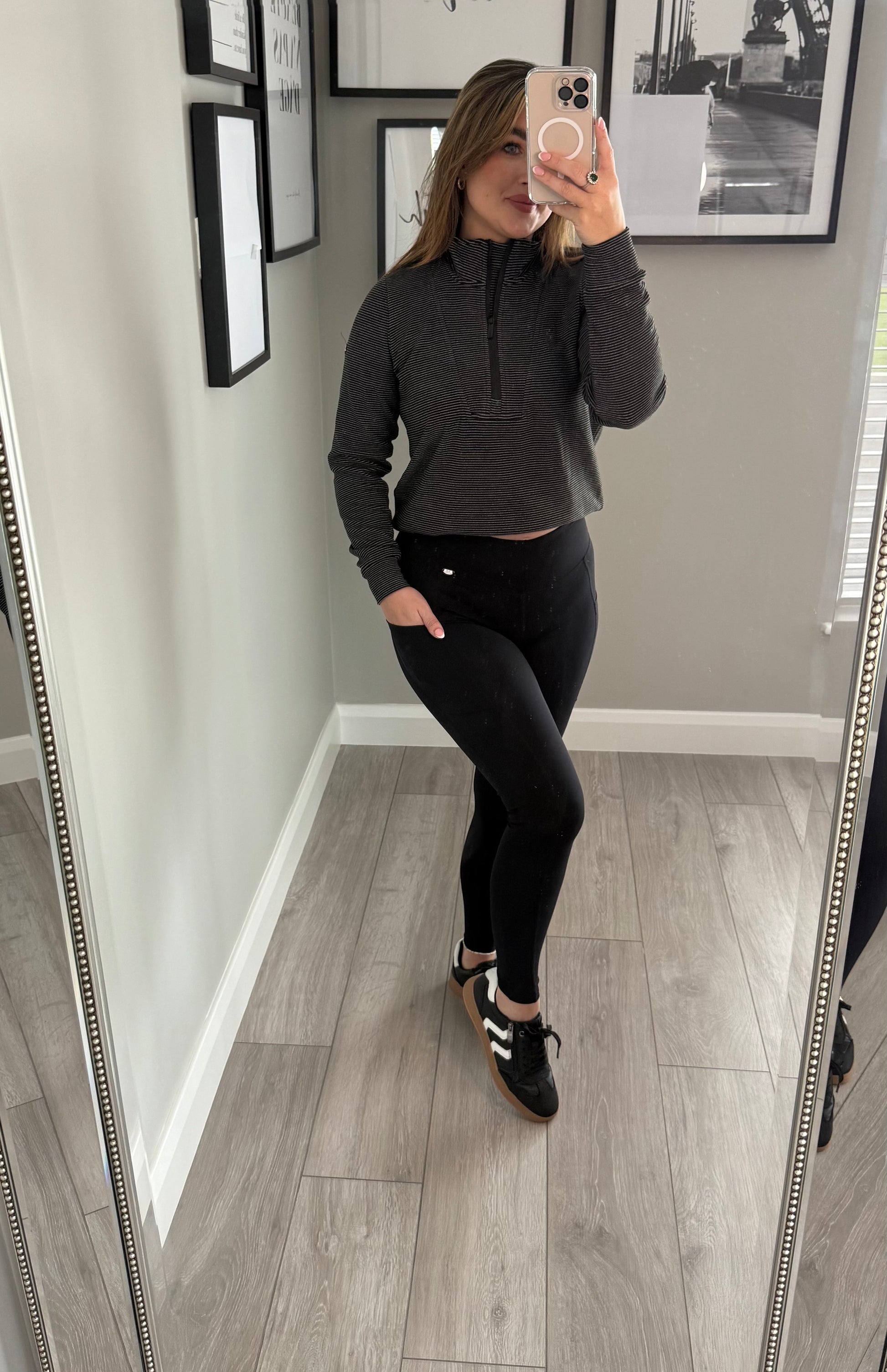 Our Relax & Renew (by Rant & Rave) black leggings give off the sporty look but in a super soft light-shine jersey combining a glossy look with a stretchy, sculpting fit. They sit high on the waist with wide waistband and have double side pockets. Leg length is 26.5 inches for an ankle grazer look.