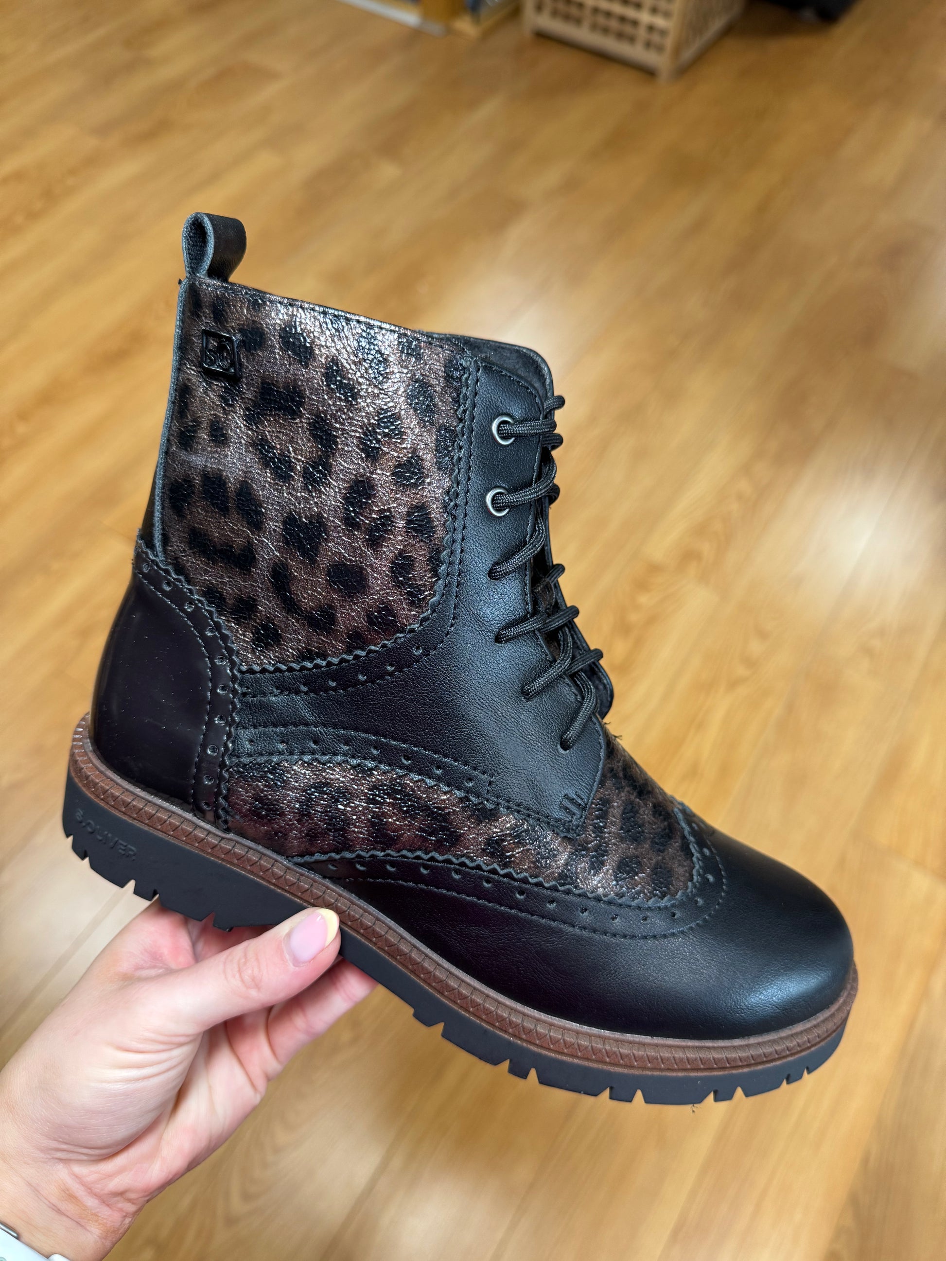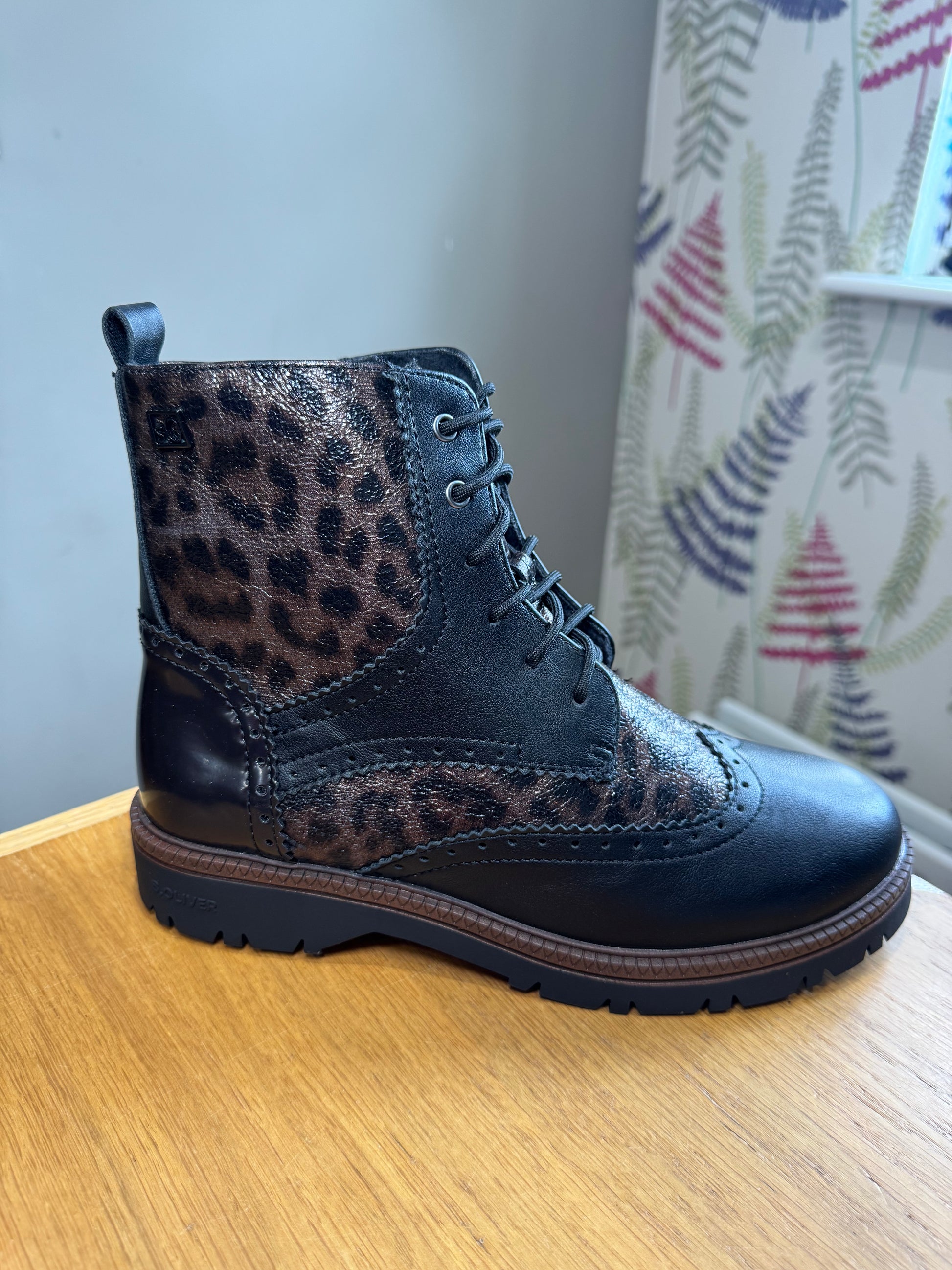 S. Oliver Flat Lace Up Boot with Brogue Effect Detail & Leopard Print Design (with Inside Zip Opening)