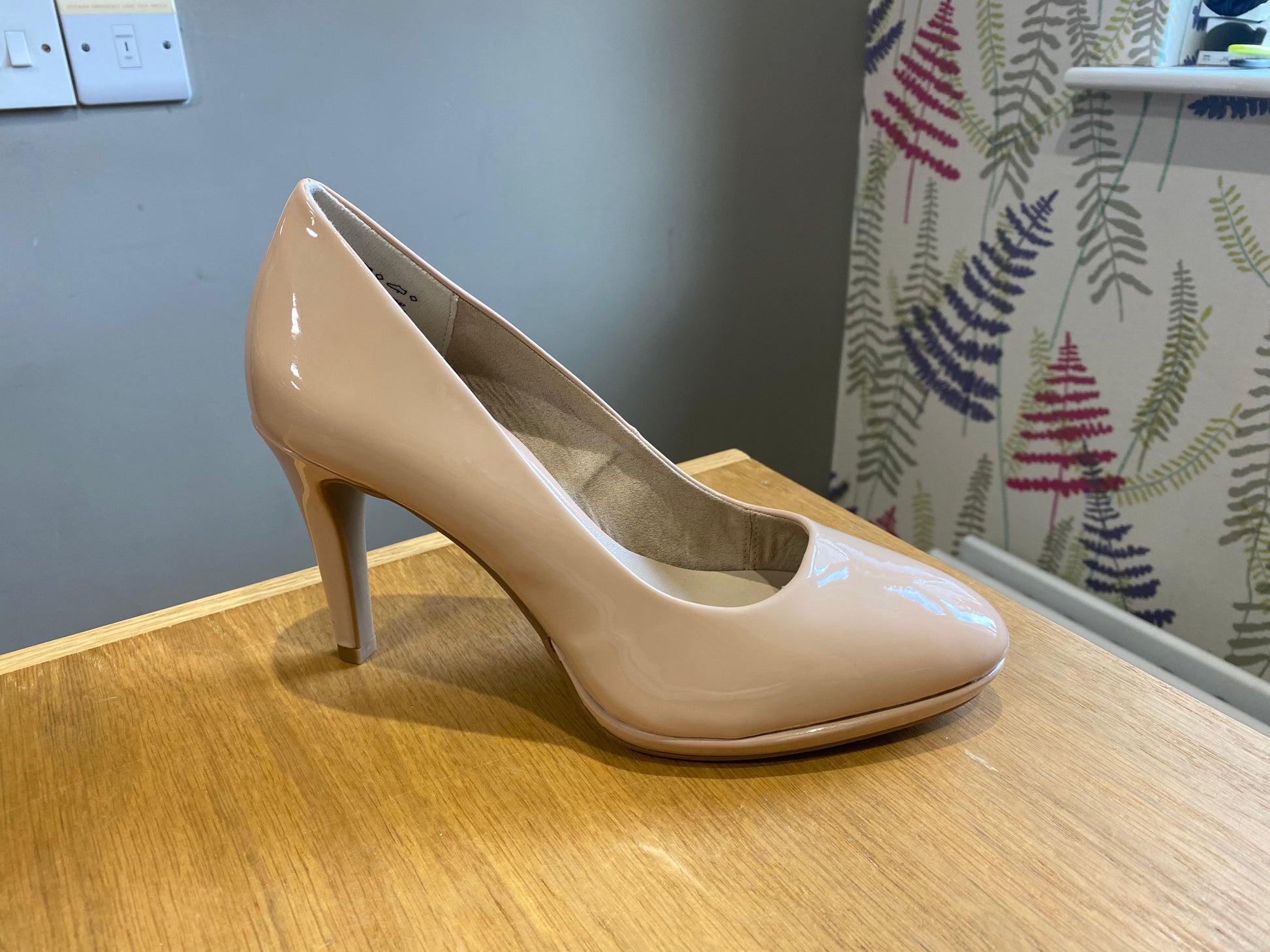 S. Oliver Shaped Toe Court Shoe with Platform Sole & Patent Finish