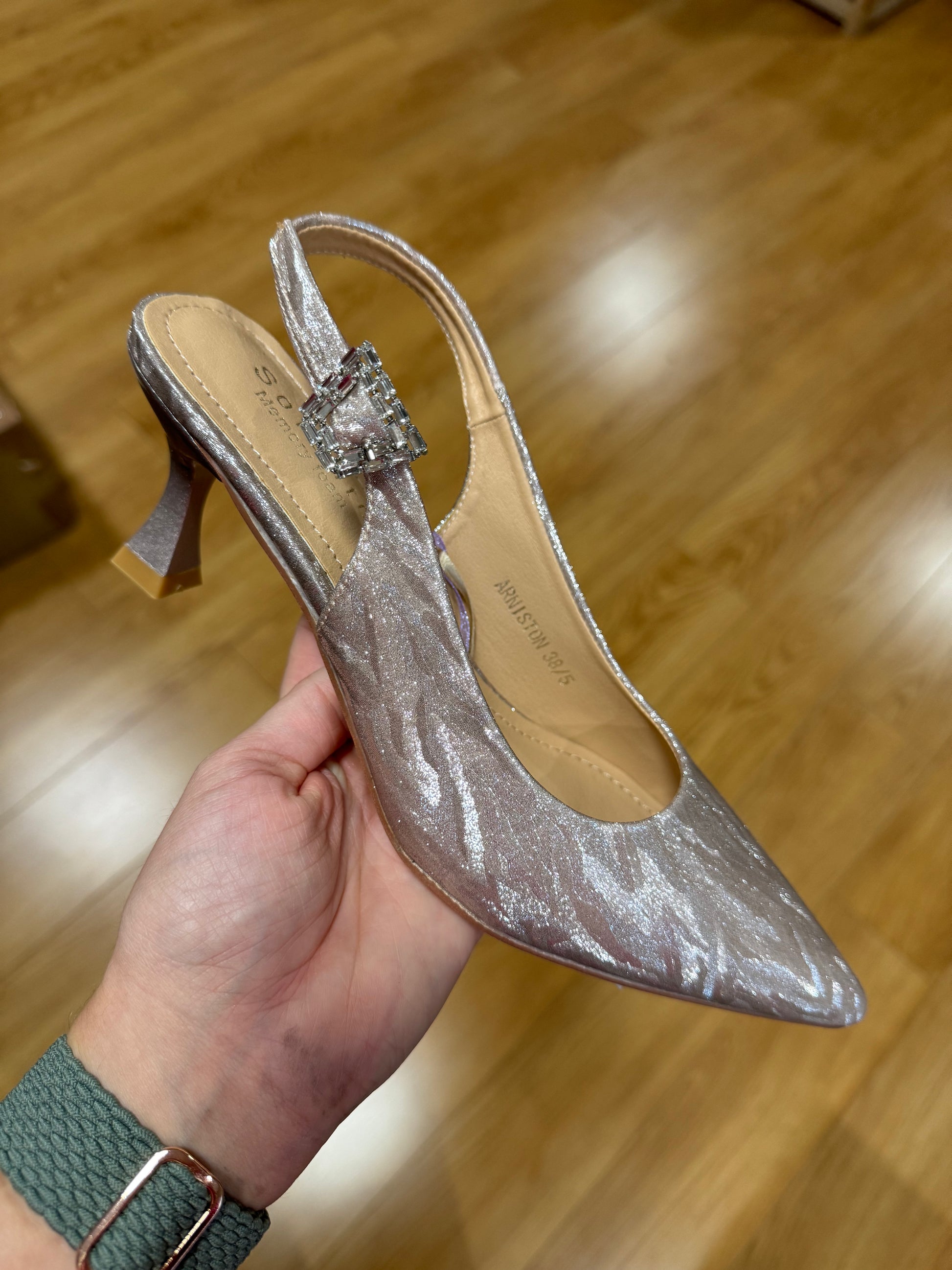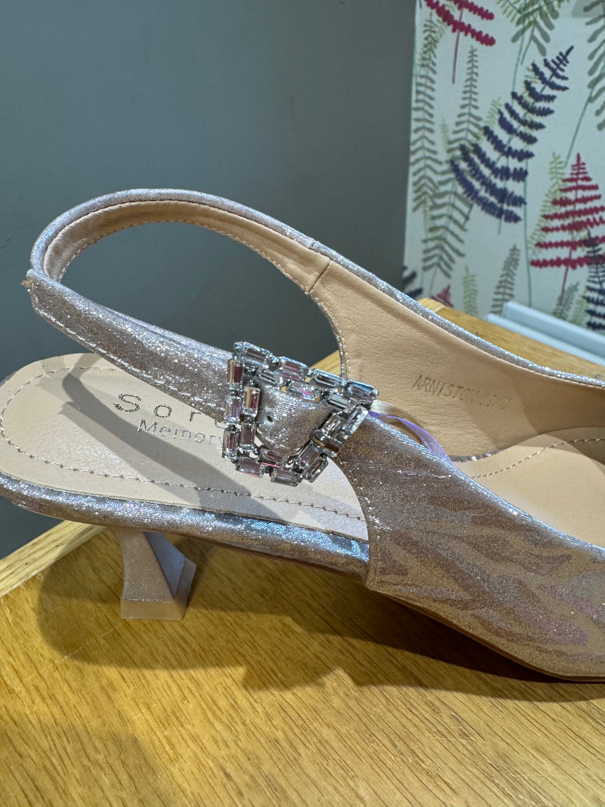 Sorento Kitten Heeled Slingback in Sparkle Design & Diamanté Buckle