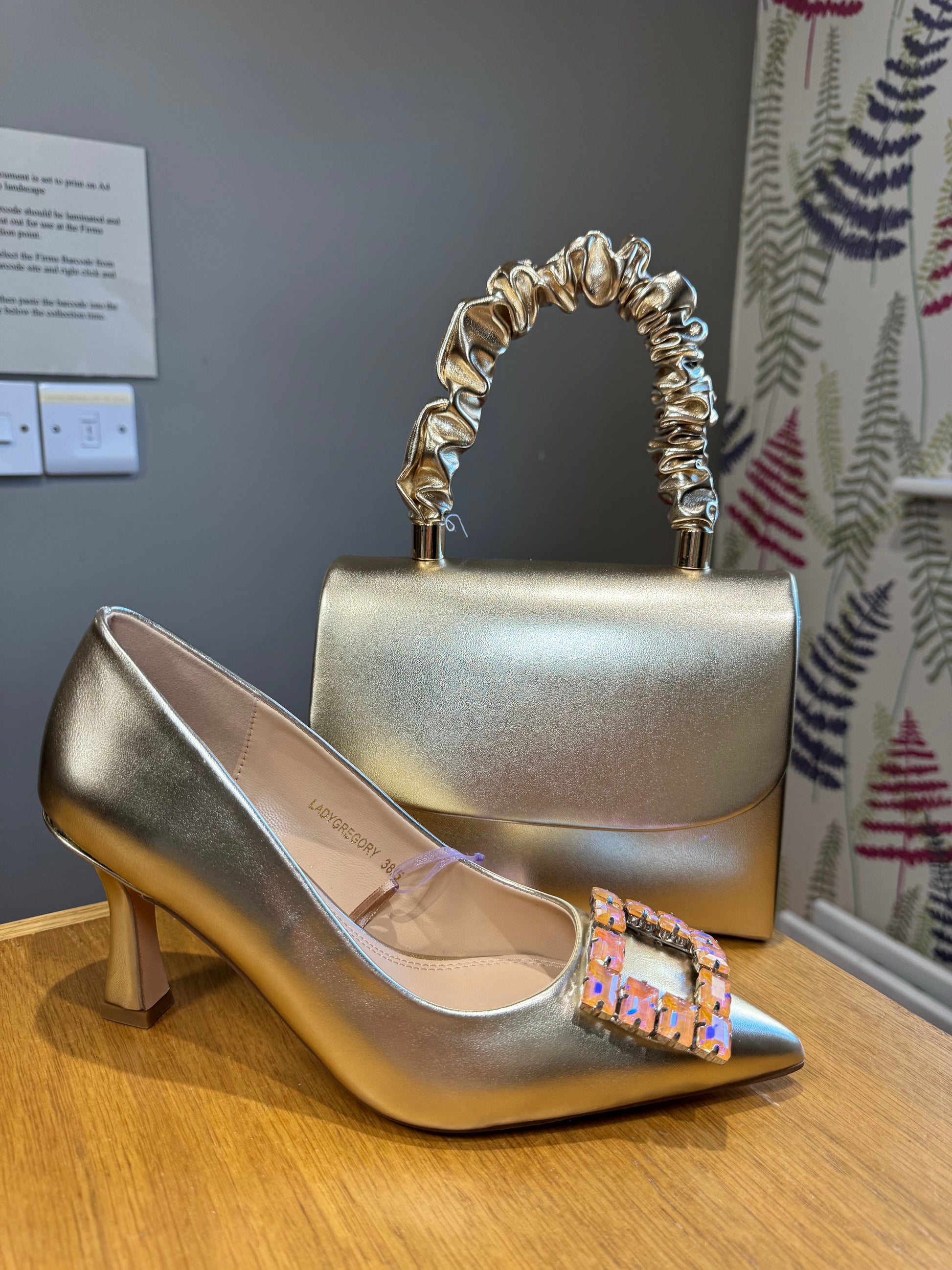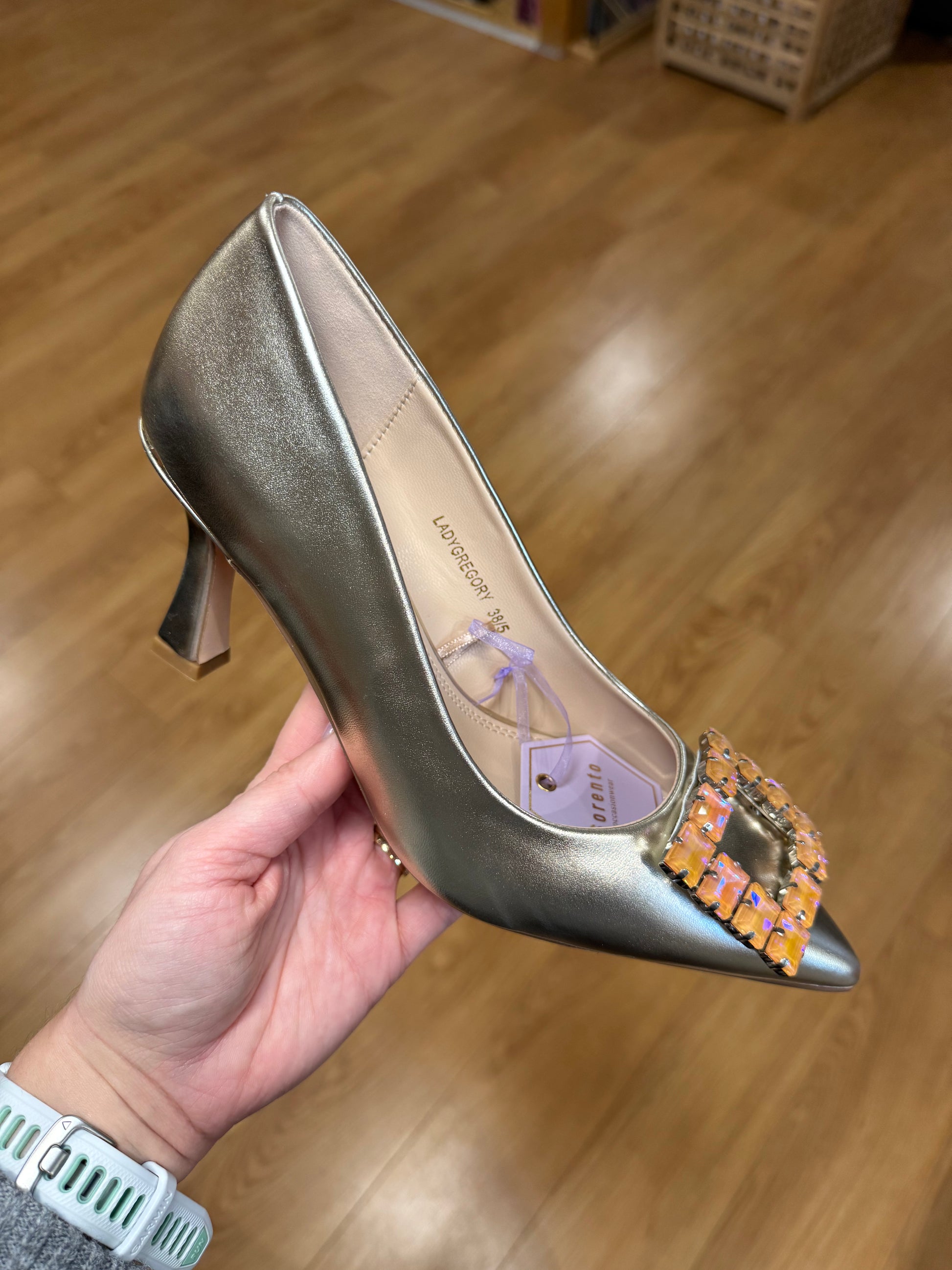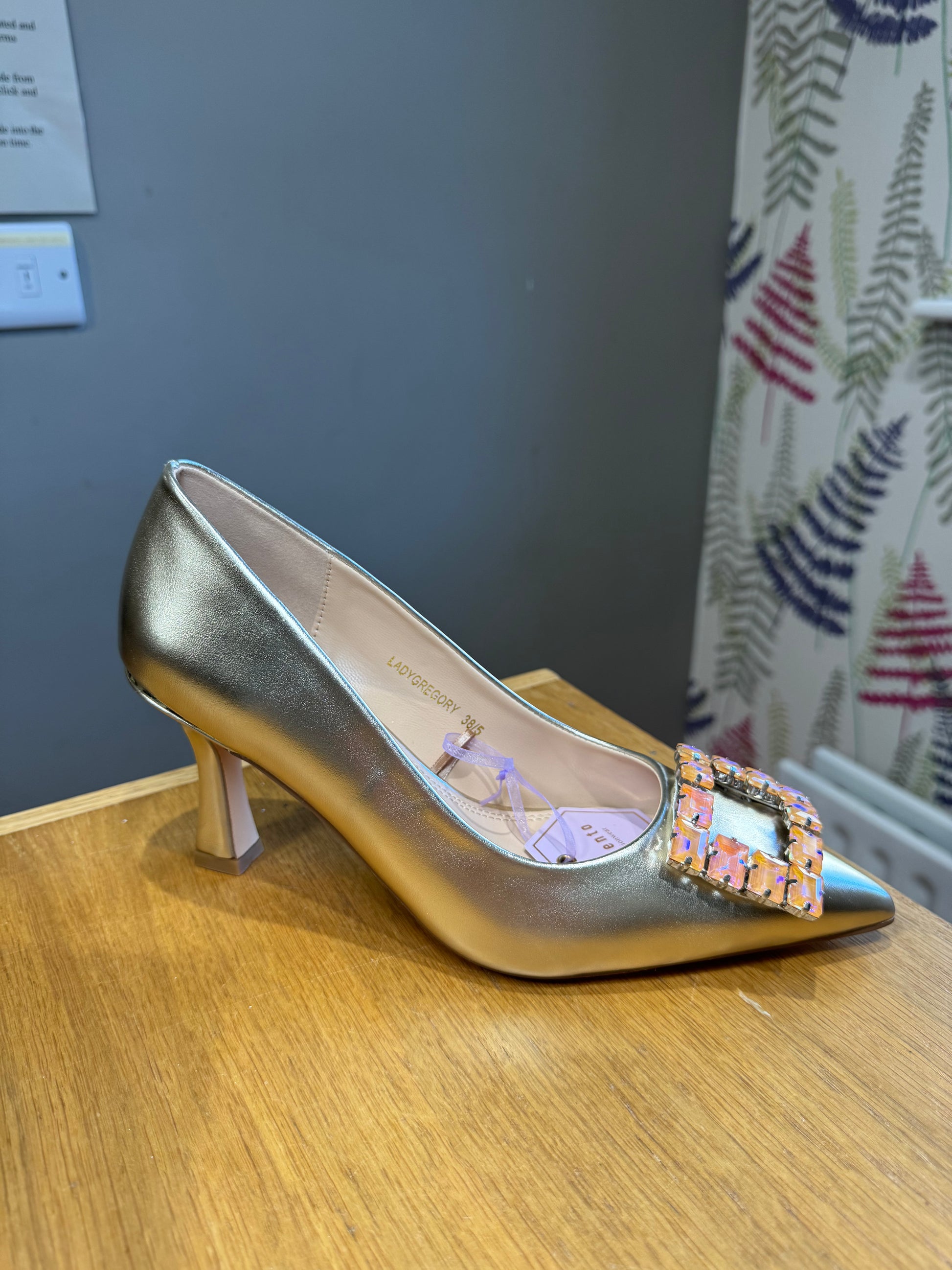 Sorento Heeled Court with Metallic Finish & Large Buckle Detail